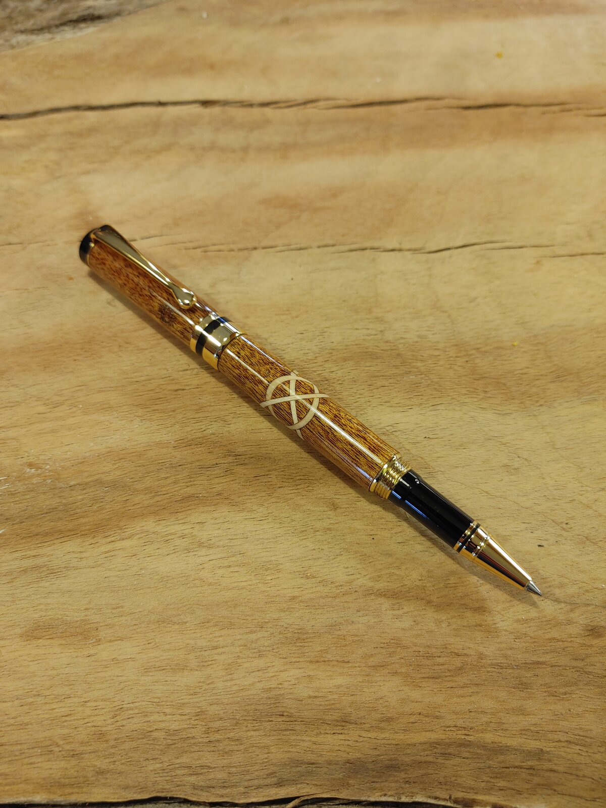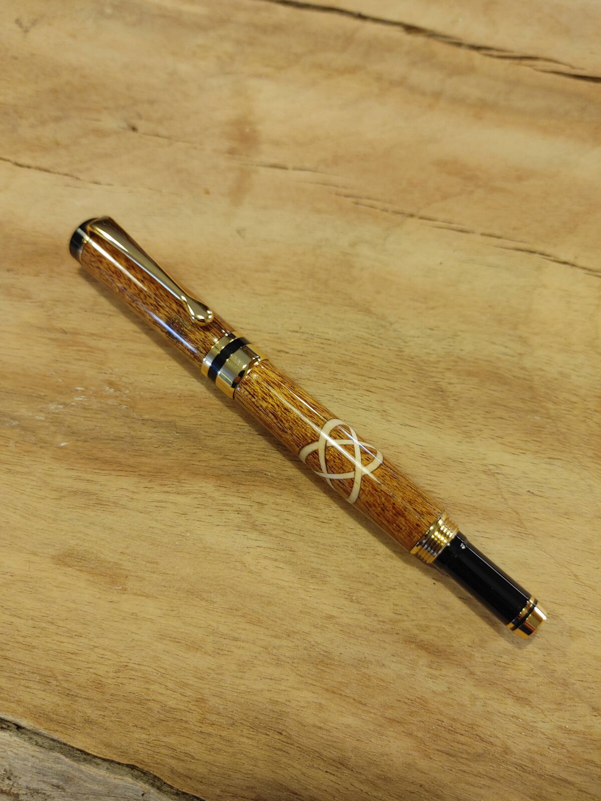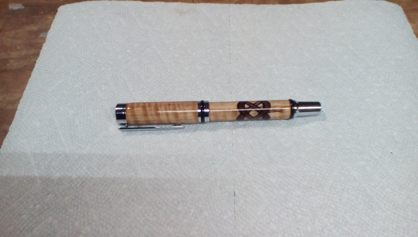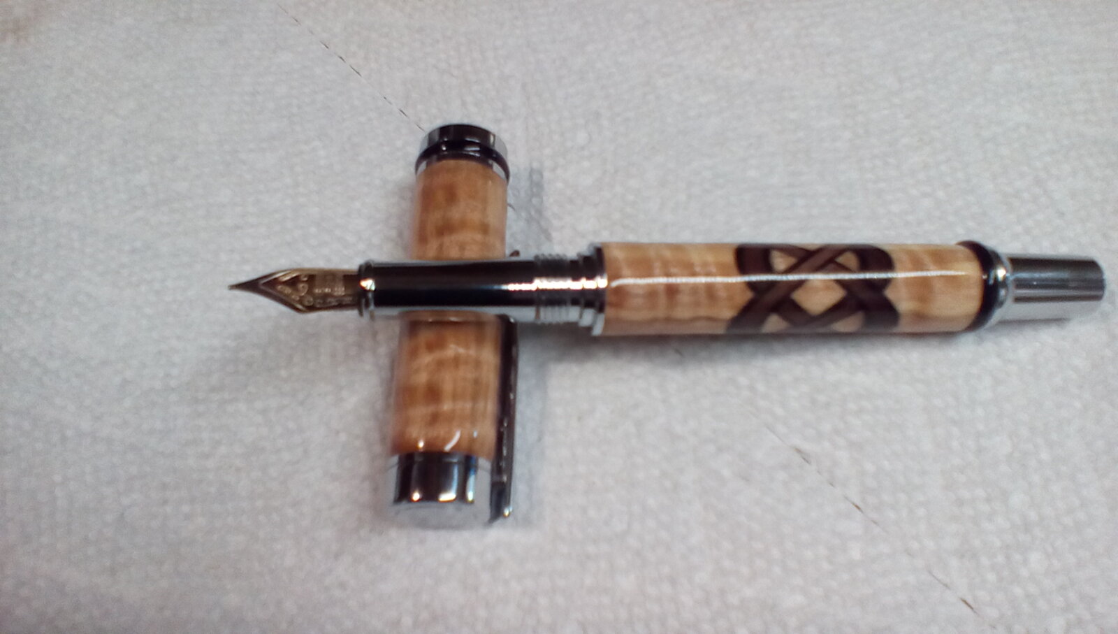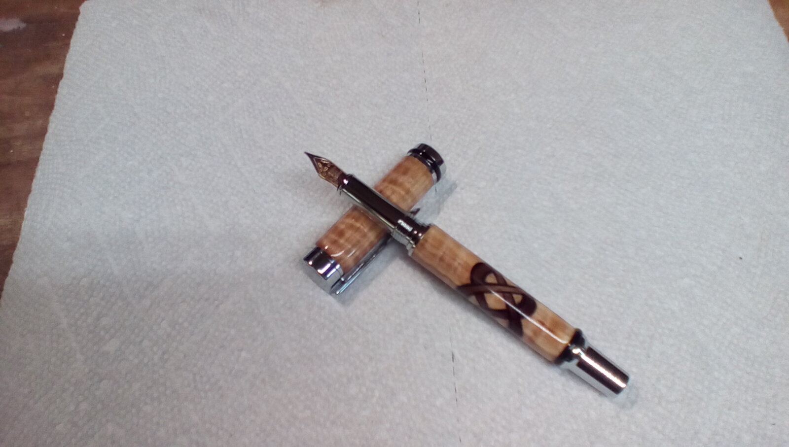 I have a commission to make a Celtic Knot (walnut) in Curly Maple background using a Cameron Chrome fountain pen. My question is would the knot look better on the body or the cap?