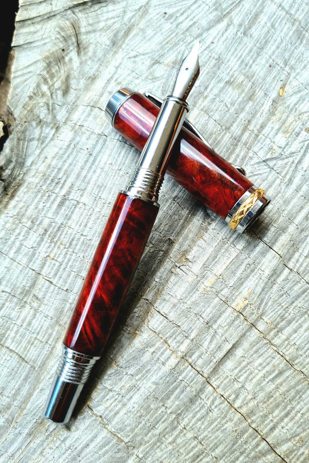 I love gloss so I did my usual CA finish, and popped it on a Triton kit from Berea. A nice kit. Really enjoyed making this pen, thanks for looking!
