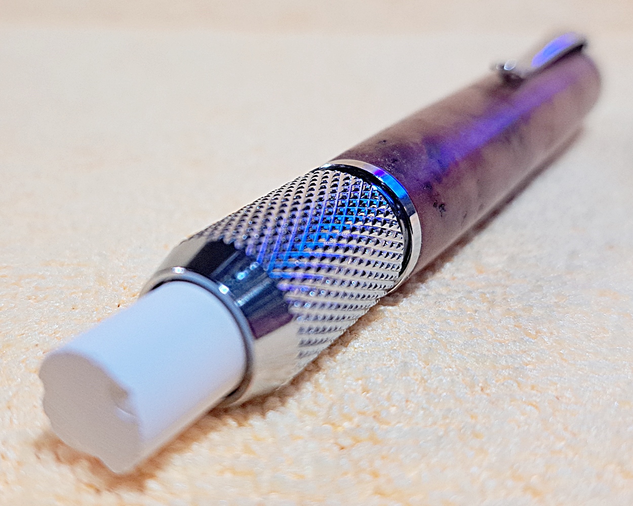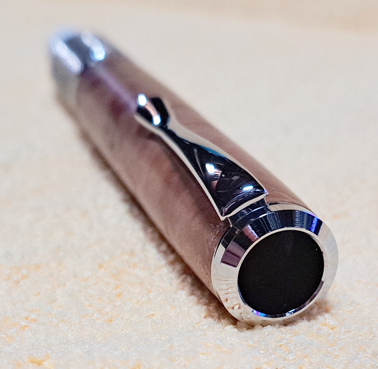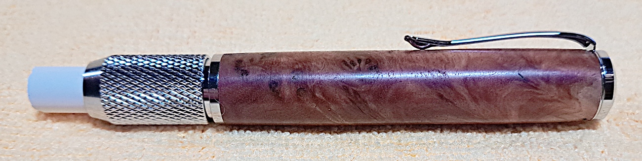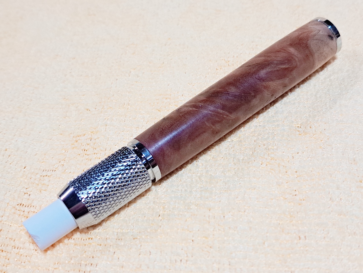 This is a PSI Chalk Holder in chrome. The wood is Australian coolibah burl from Woodcraft. The finish is Pens Plus.