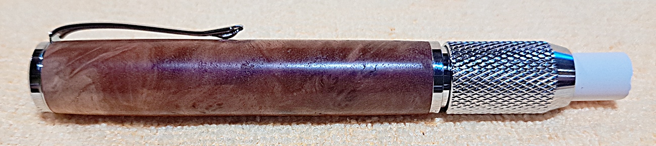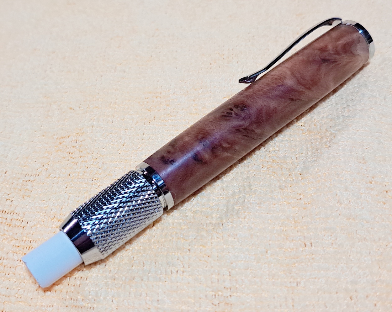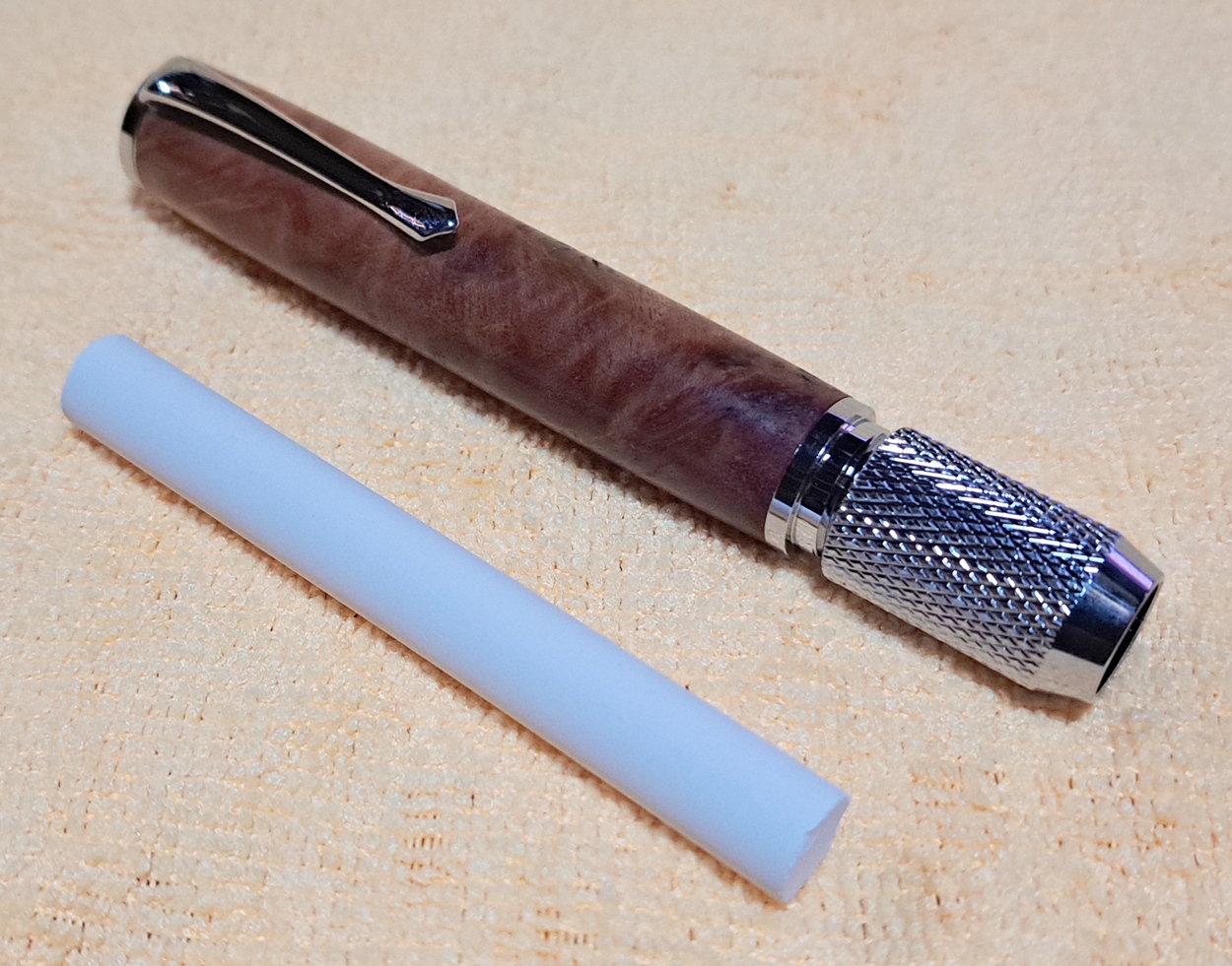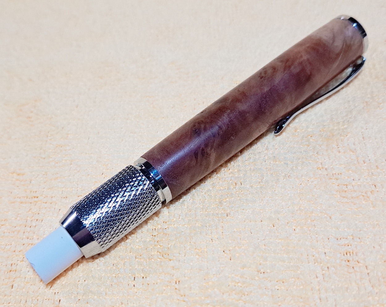 This is a PSI Chalk Holder in chrome. The wood is Australian coolibah burl from Woodcraft. The finish is Pens Plus. By the way, it does not come with chalk.