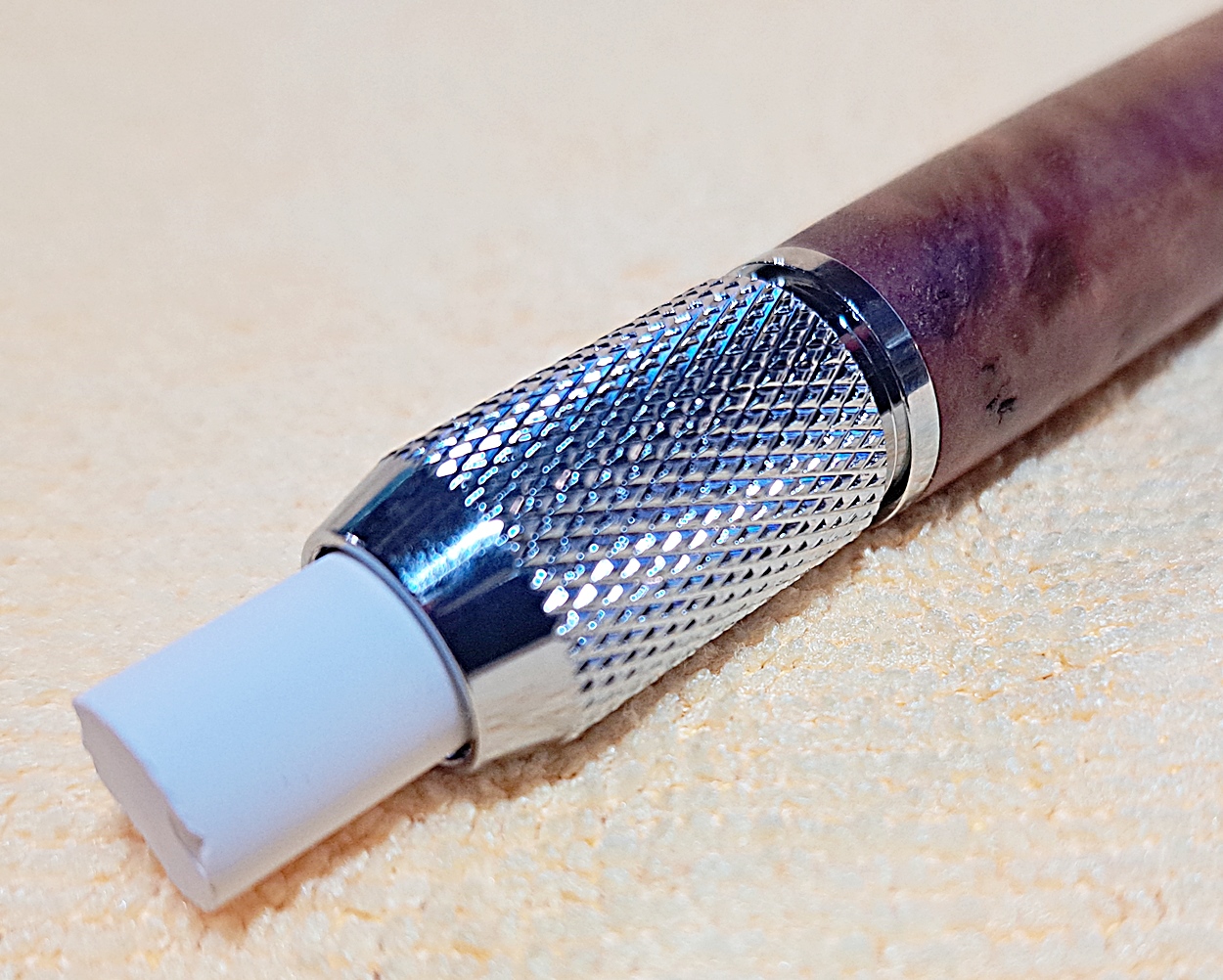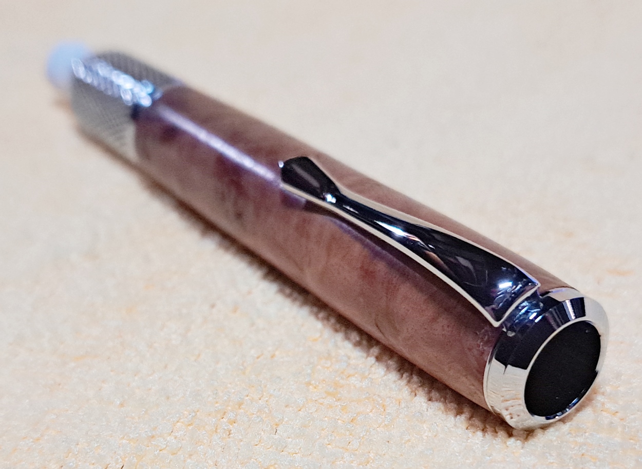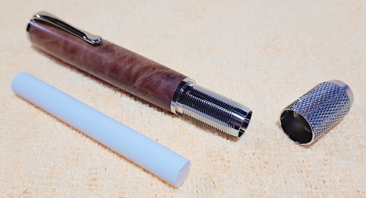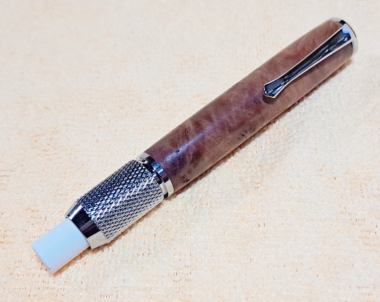 This is a PSI Chalk Holder in chrome. The wood is Australian coolibah burl from Woodcraft. The finish is Pens Plus. By the way, it does not come with chalk.