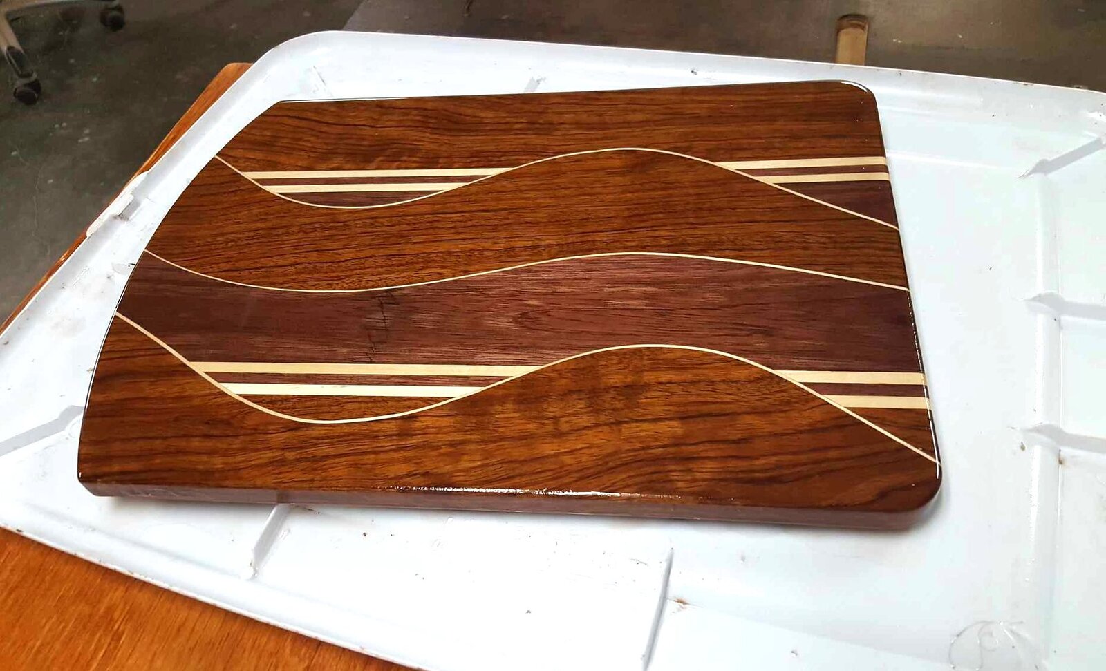 Bubinga, Purple Heart, and Maple.