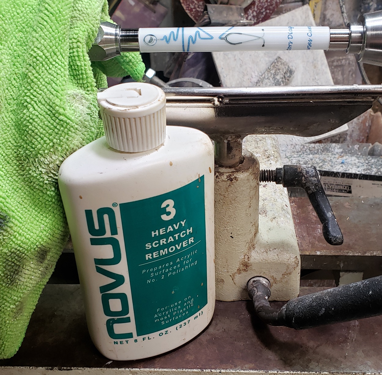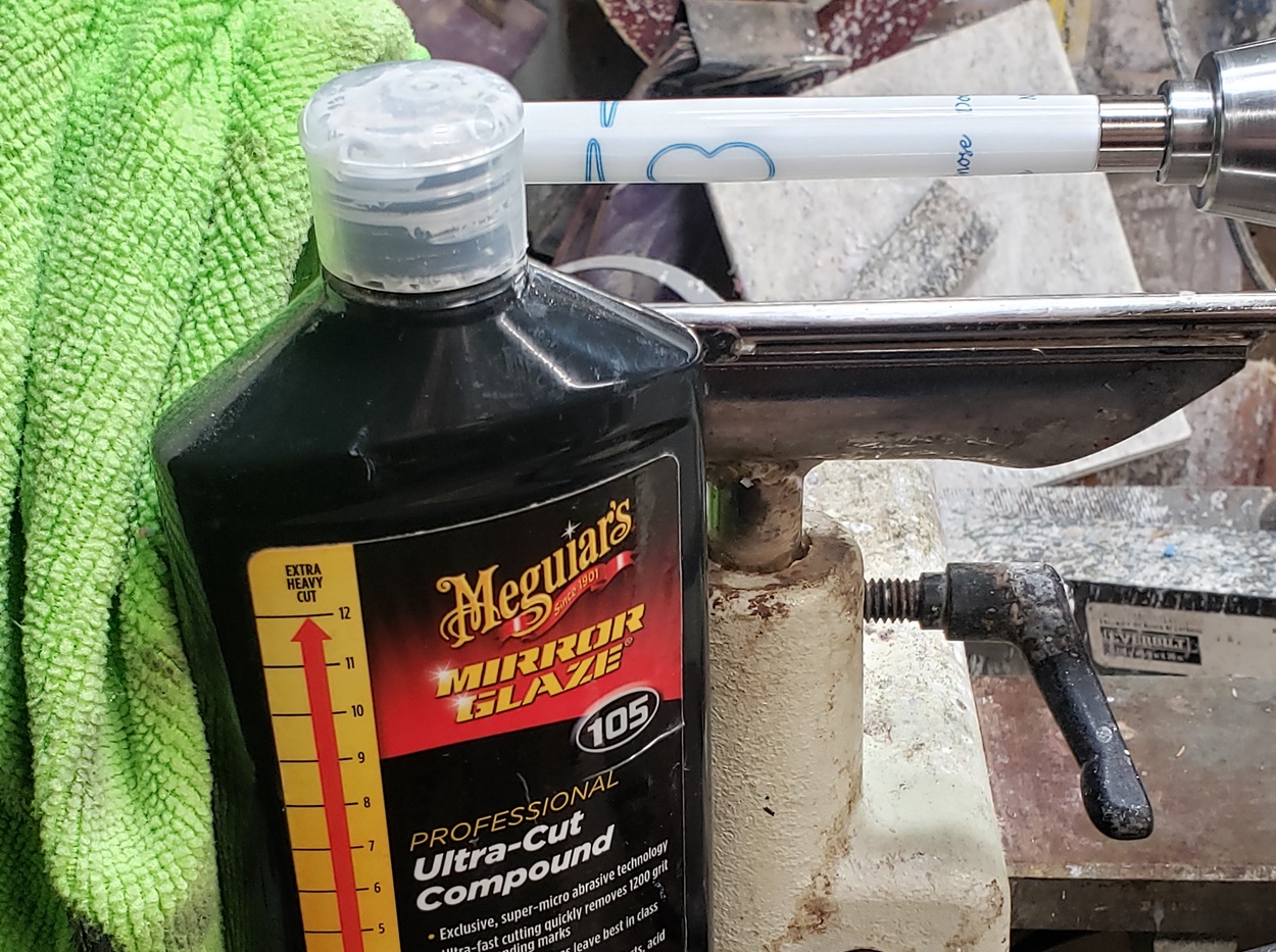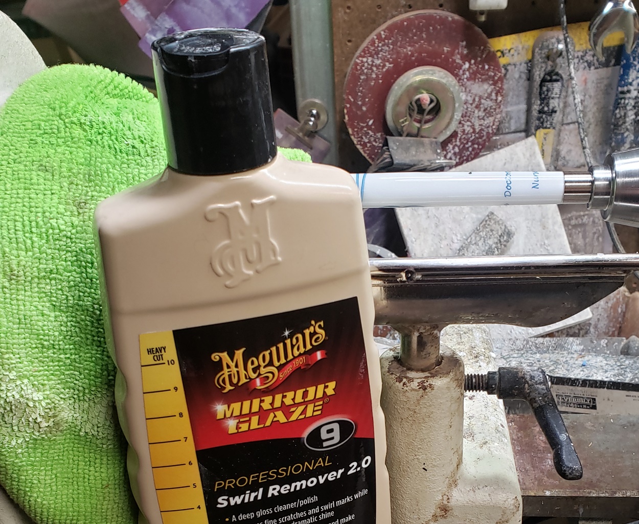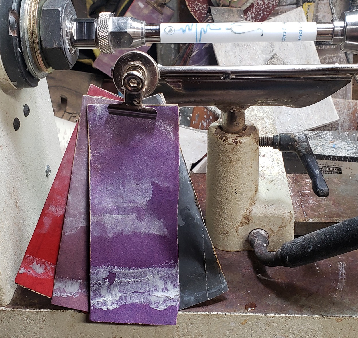 Any idea what is causing the chatter? It's only on the right (tailstock) side. It quiets and gets smoother towards the left (headstock) side. It's a fresh edge on my carbide chisel. The blank is a label cast from Wooden Quill. I don't know what kind of resin it is. Each side looks the same, but you can feel that the left side is smoother than the right side. It's on an Ultra-Shear mandrel system, turning at about 2,000 rpm. I'm perplexed.