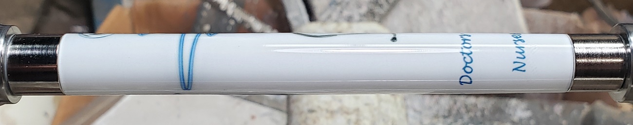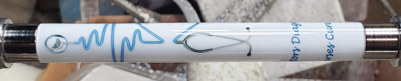 Honor nurses with a great pen and blank combination package Pen Blank: Blue Nursing Stethoscope Heart – EKG Image – Cast on Personal Twist Tube with the phrase: “Doctor’s Diagnose” “Nurses Cure” Ch…
