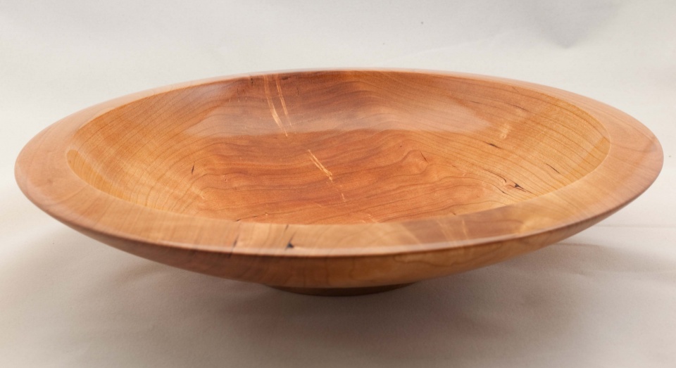Cherry Bowls roughed out by a club member who recently passed away. His family asked us to complete some pieces and donate them to charity in his name. Despite the wide rim, they are only round 1/4" thick. Completed in my shop and finished with Bush Oil and polyurethane.