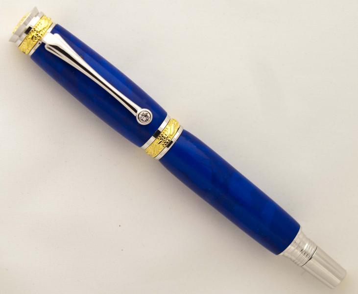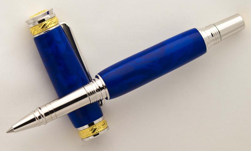 Made it this A.M. It's a Chilean Lapis Tru-Stone from Exotic Blanks on a Rhodium/22K plated Majestic Junior Rollerball. Fun to turn. Very different from any other Lapis Tru-Stone I have turned. I'm not sure you can tell in the pictures, but the various hues of blue are striking. Comments welcome but most of all thanks for looking. HAPPY HOLIDAYS! Doc