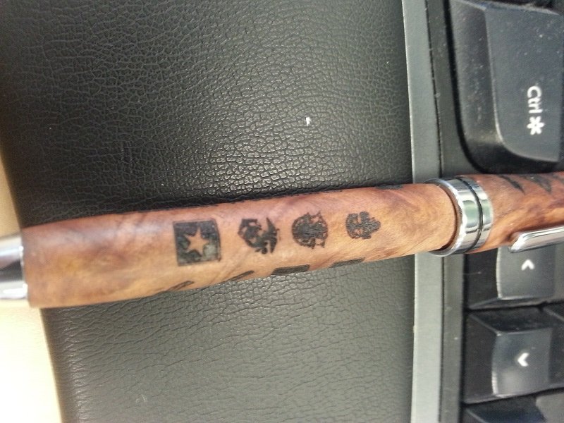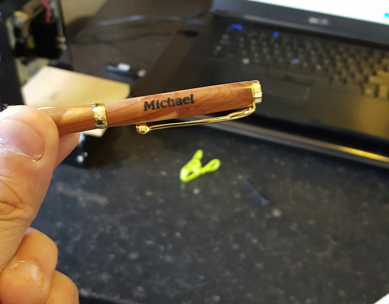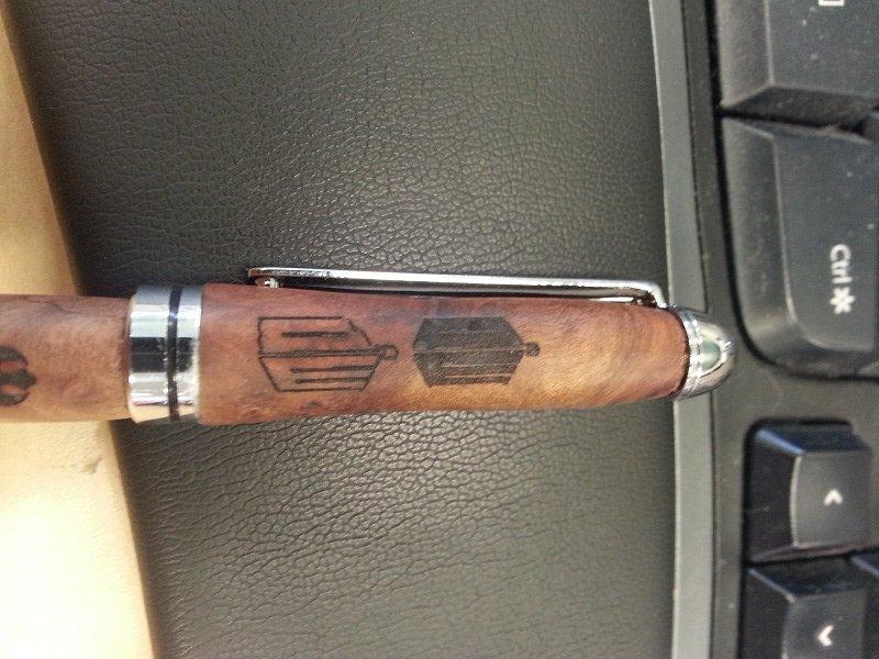 This is the first pen I tried 10 minutes after I got it setup. I'm thinking of upgrading it to a 2.5w, or just getting a newer/larger machine.