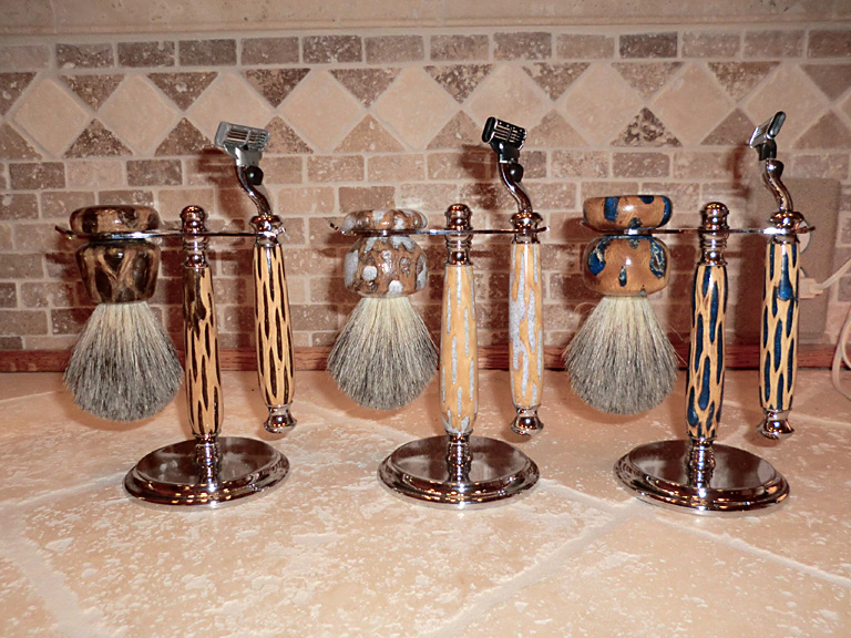 A few weeks ago, I made a post looking for some cholla cactus. Roy was kind enoungh to supply me with several pieces that I cast in Silmar for use for the razors and stand. The large cholla for the brushes came from Hobby Lobby.