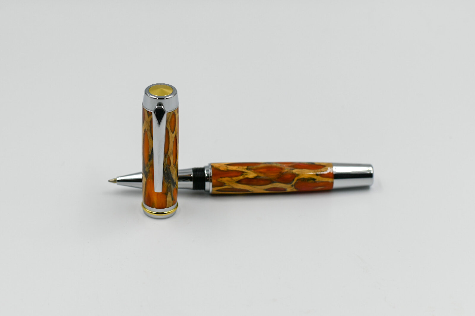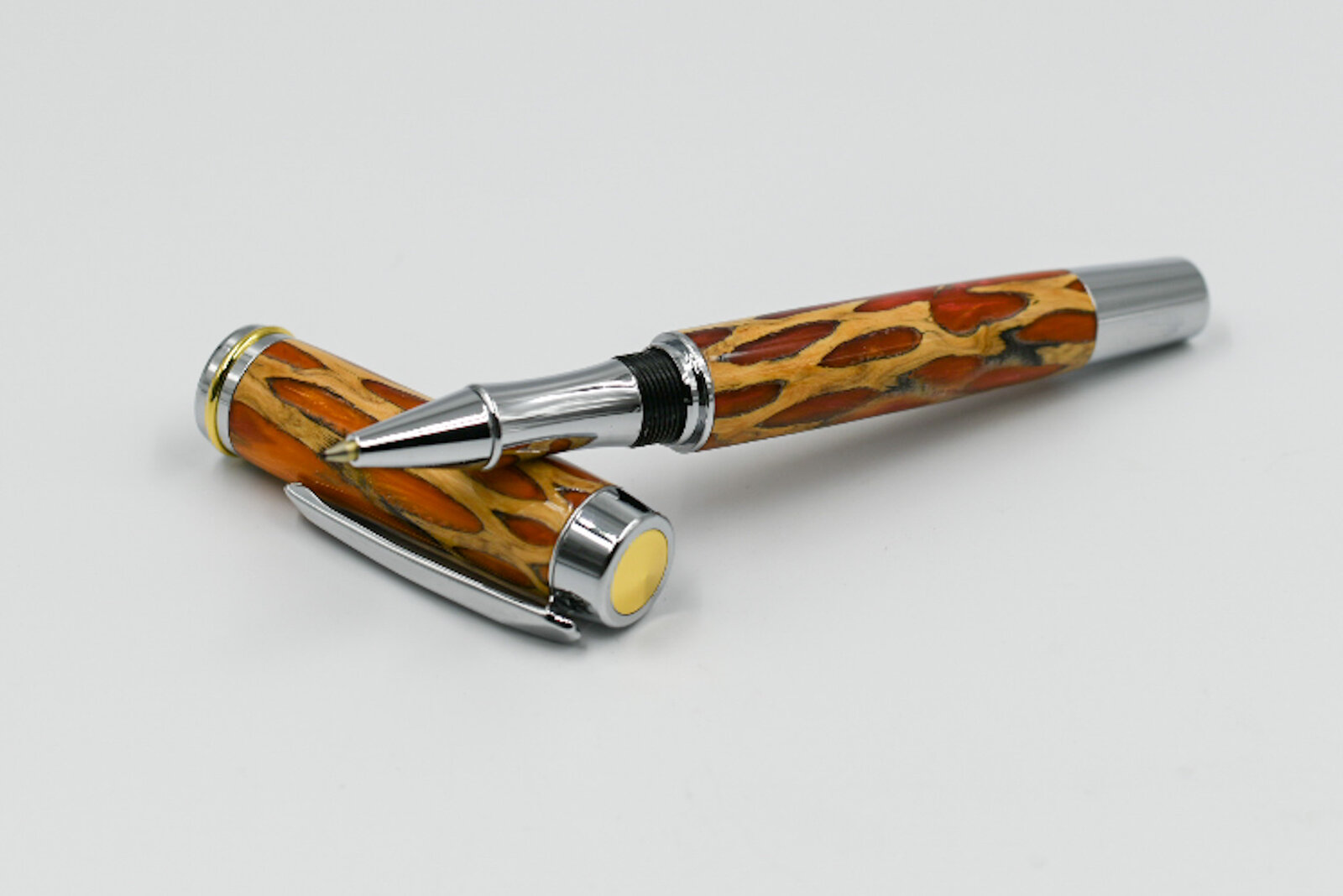 This is a cast cholla cactus skeleton in red and orange resin. Finish is CA. You would have to have some monster hands to use a pen this big
