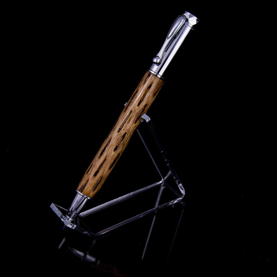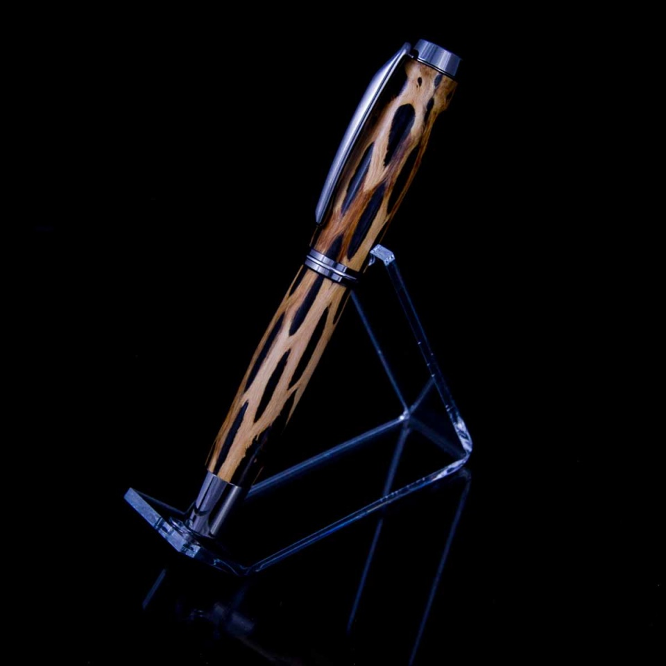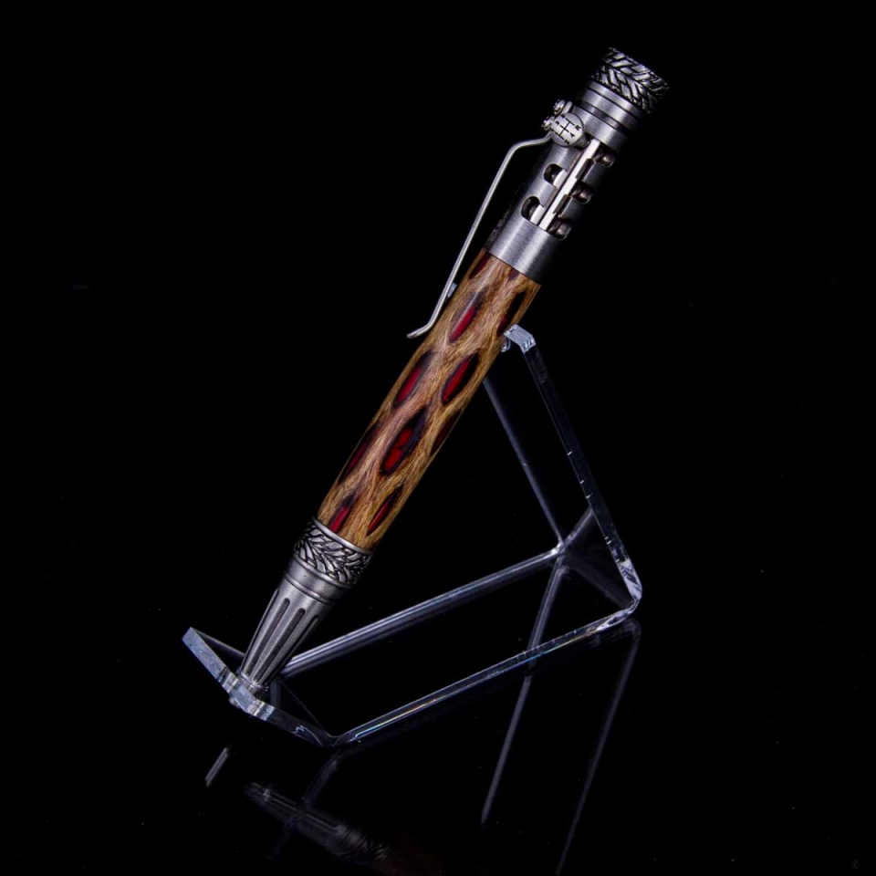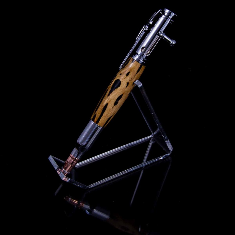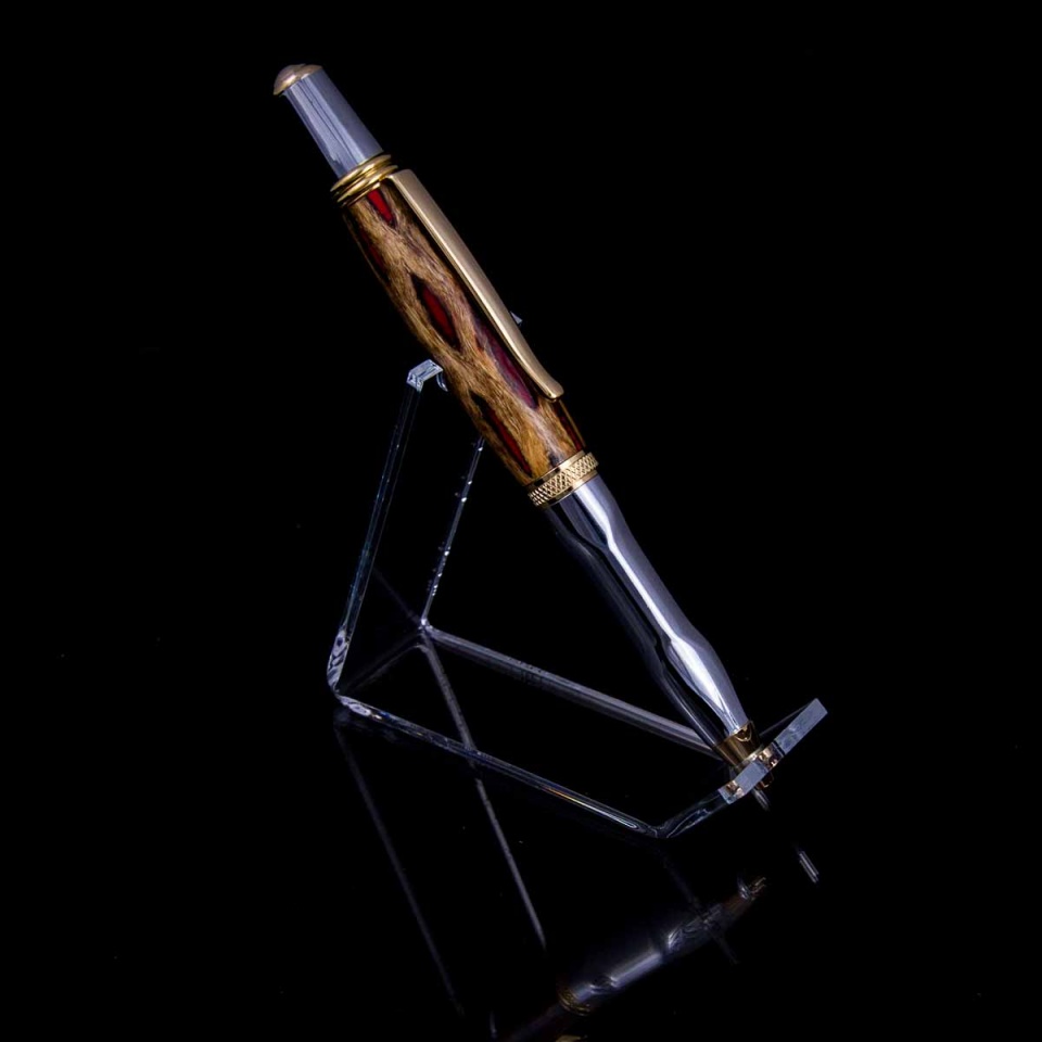 Zen w/orange - while I really like how the zen works with the cholla, the fill here turned out disappointing. It looked bright orange when I poured it, but really paled out when it turned. Still makes for an interesting pen, but a repeat I will not try. Gotta do another zen cholla with a better color.