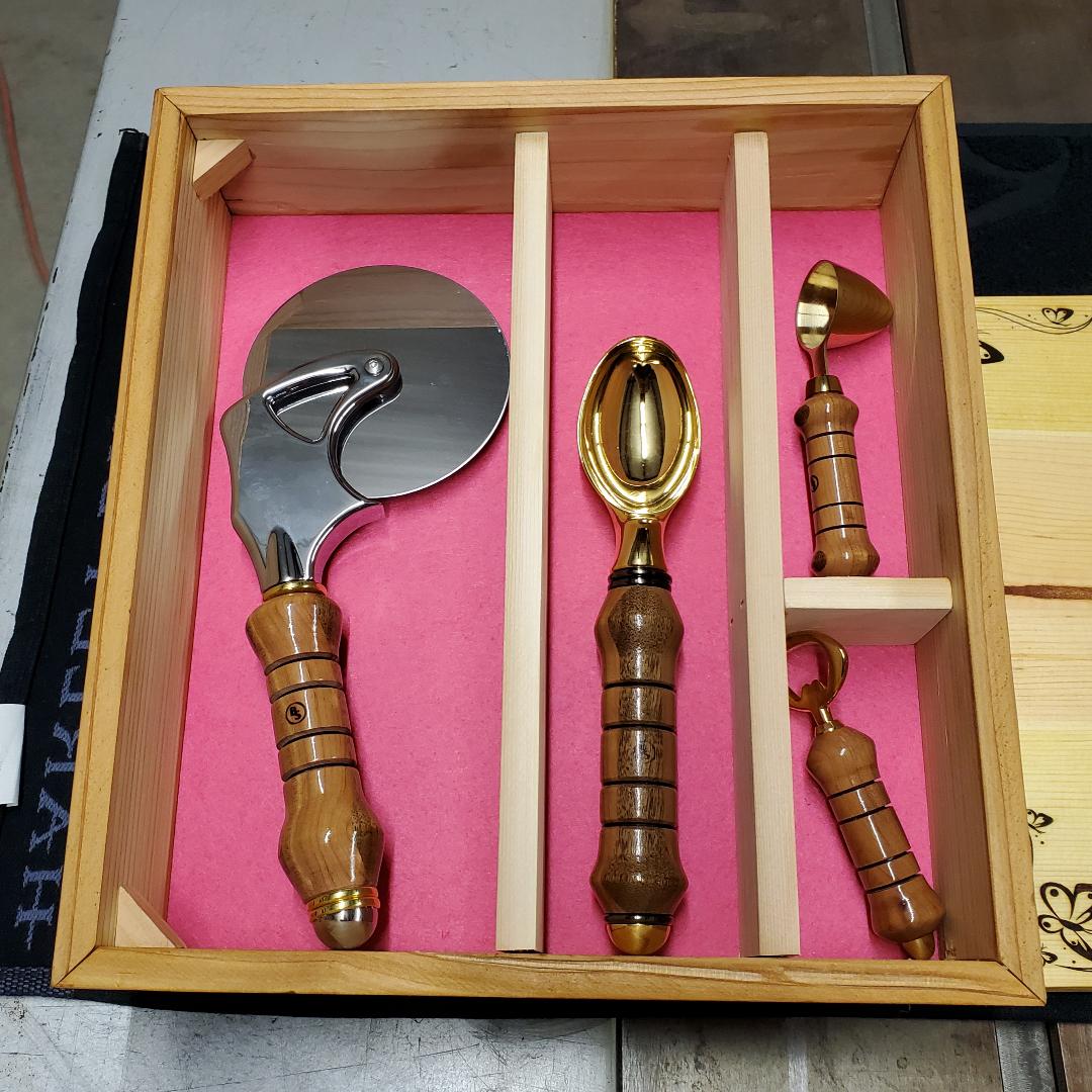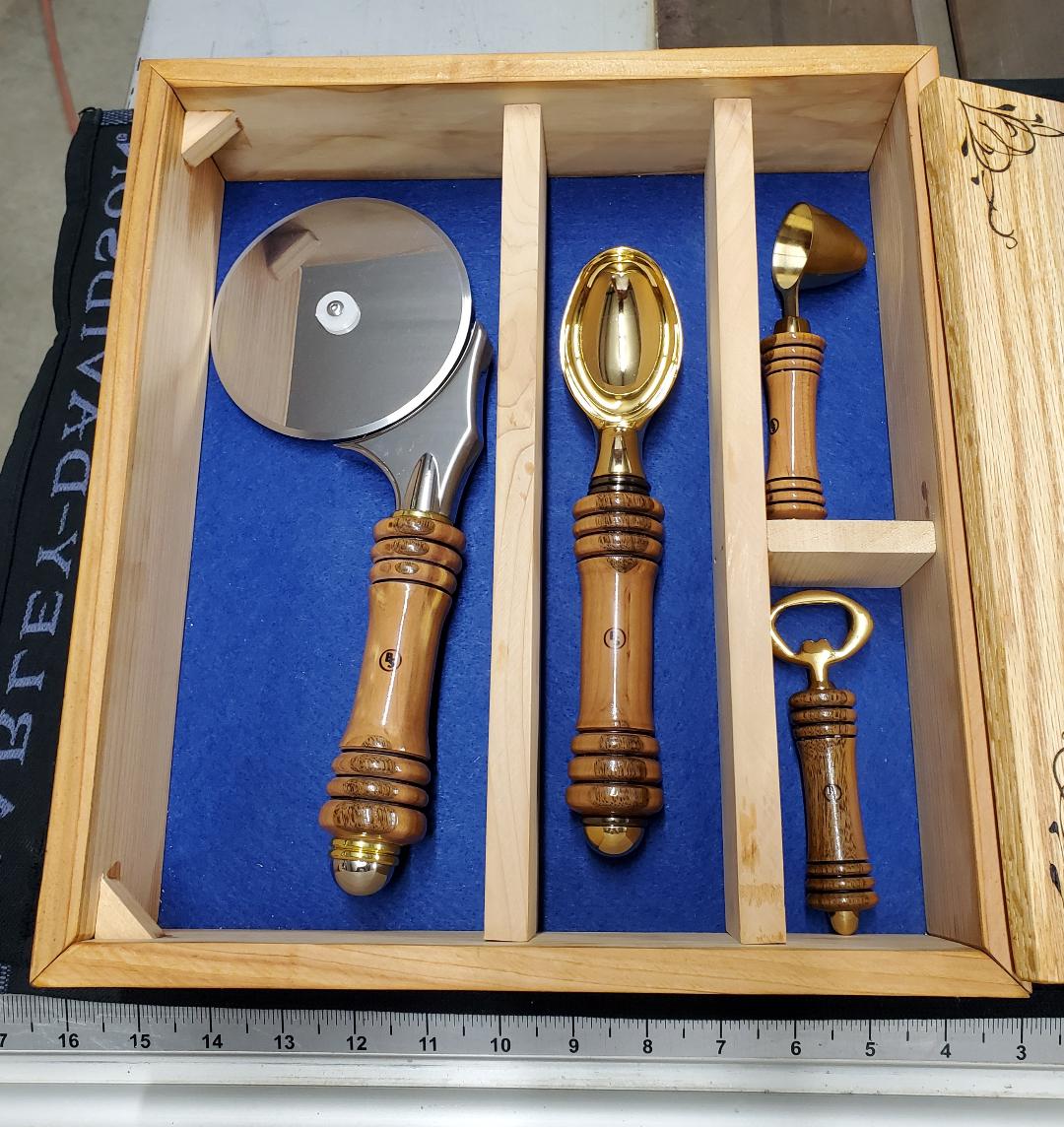 Bobby, they are very nice gifts, both recipients will be impressed. And the value that they would place on them, is more money than most men could afford. Nicely done! There is one item that I don't care a lot for though, and it's that you burned the year into each lid upside down.