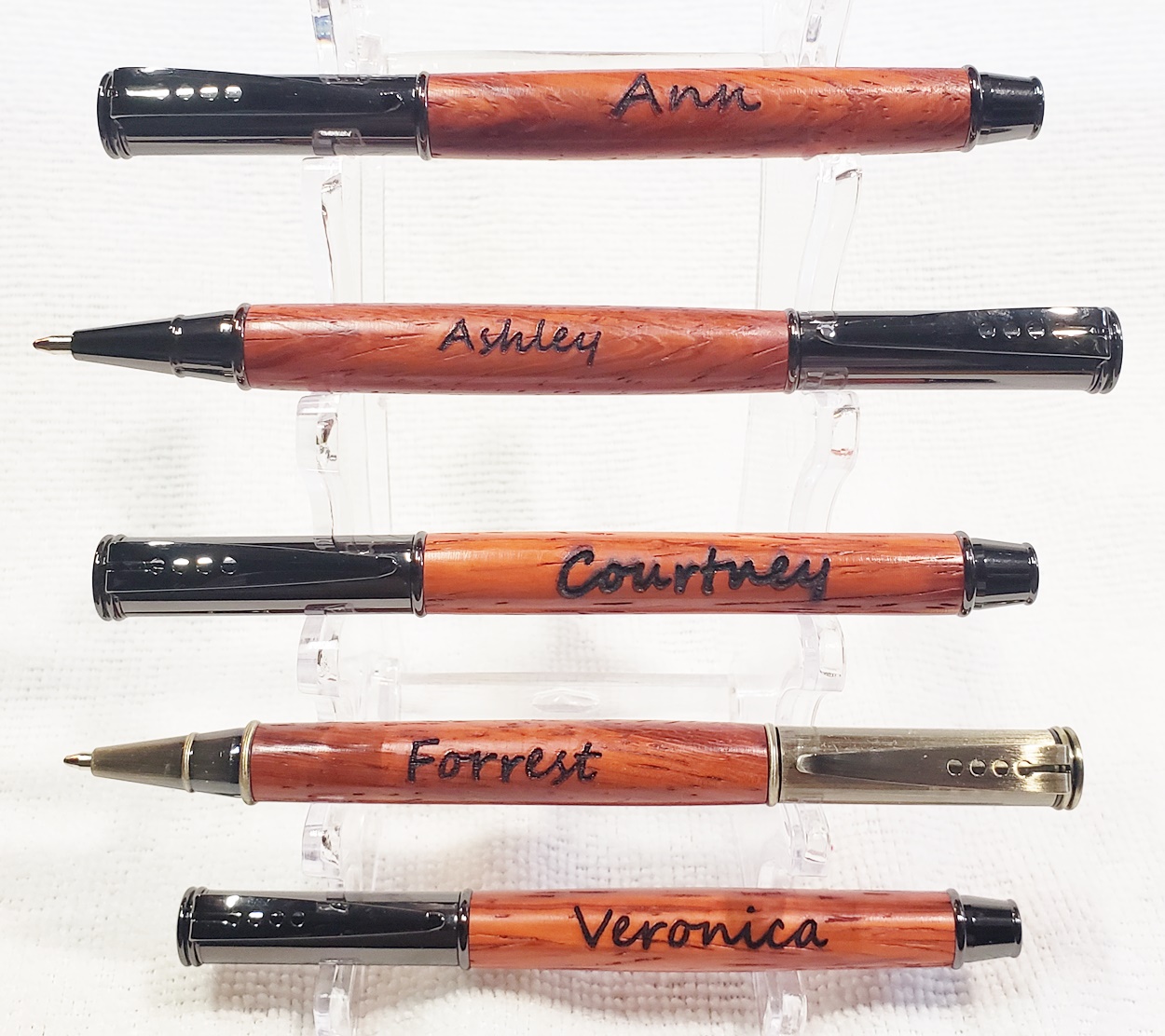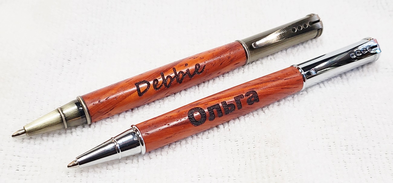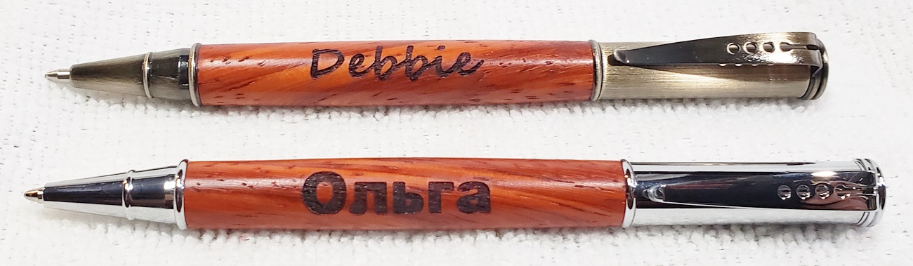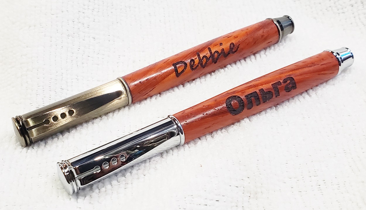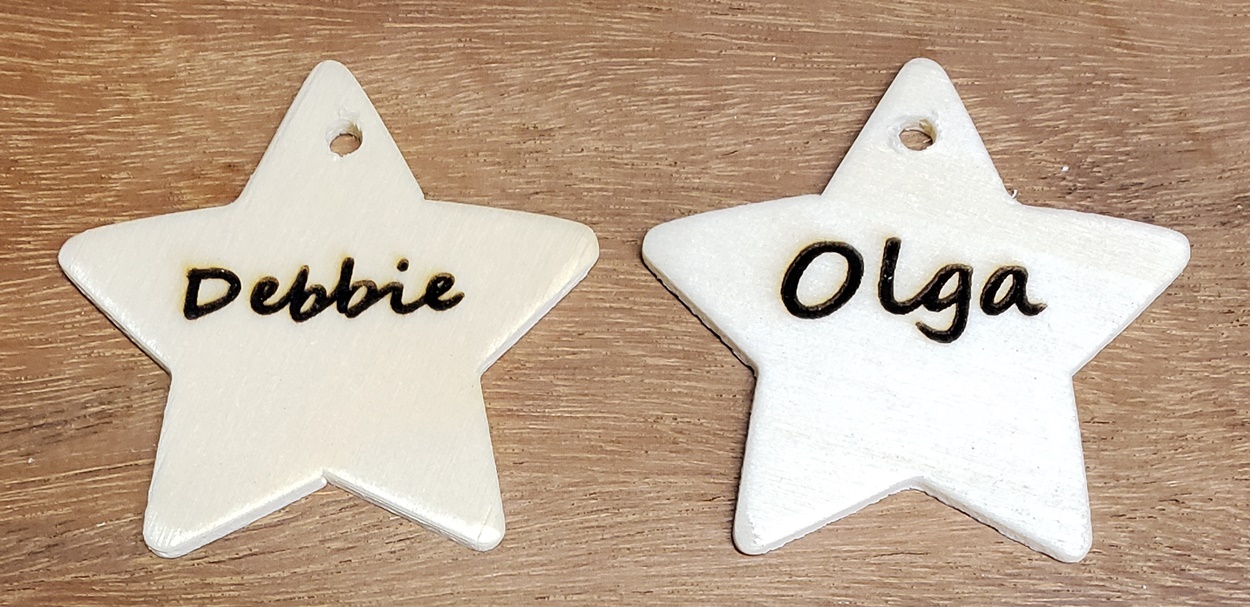 I engraved them with my NEJE Master 2 7w. Still figuring it out, like why some of the text is larger than others. Courtney was the first one I engraved, and I had it set way too strong. But overall, I'm happy with them all.
