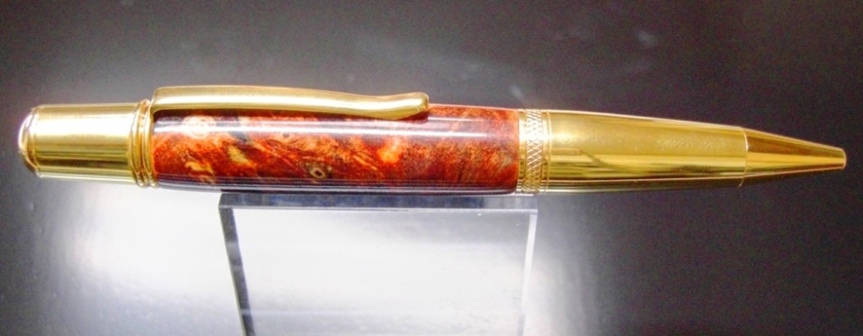 It's been a while since I have posted anything, but here is a special Pen for a special Christmas gift. It's Brown Box elder burl on an all Gold Sierra Vista.