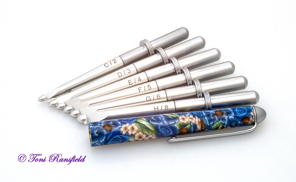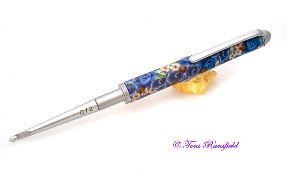 I do hope she likes the crochet set from Penn State Industries. The handle is all Millefiori polymer clay cane slices, baked, sanded and polished!!