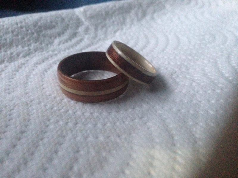 Seven years ago, my wedding band melted at work, so this year I looked for a band that wouldn't conduct electricity. But all I found was ceramic and too breakable for my work. And the Jewler suggested a bentwood ring. And these are the first two I've done so far.