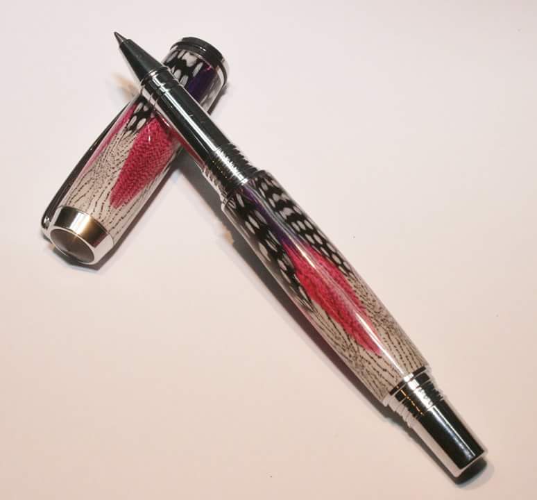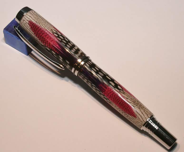 The blank and kits were sent to me but I have no idea by who. There was just a note asking that they be turned and assembled. I think they came out nice. I sanded the blanks to 12000mm and polished with Huts Plastic Polish. All C & C welcome. Evelyn has already laid claim to it.