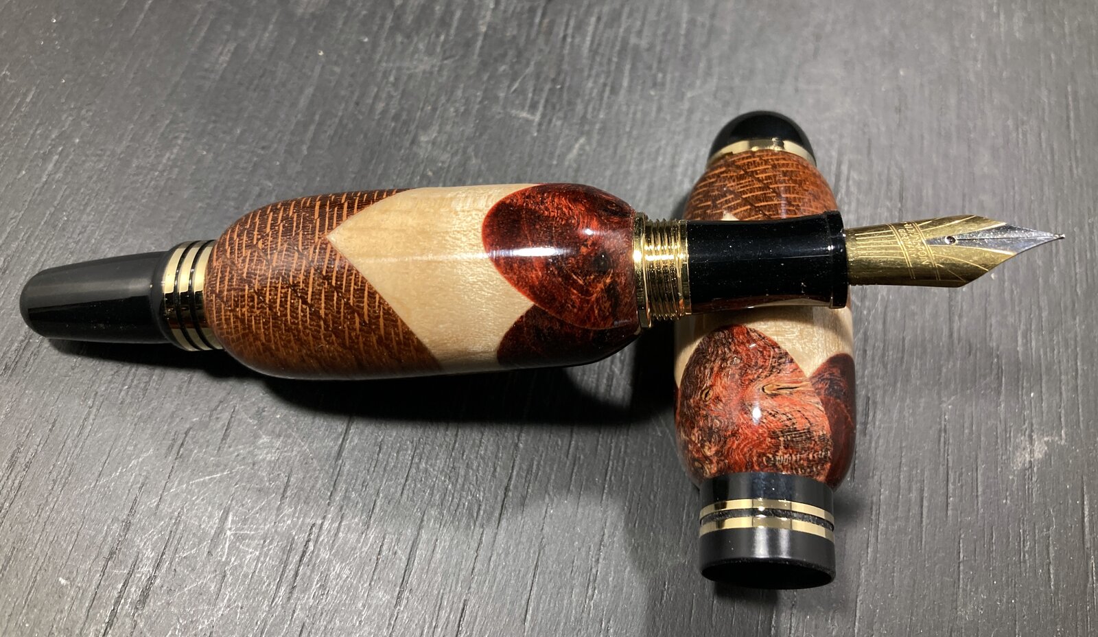 I agree. We are on somewhat of a monthly cadence. He contacts me and asks "So what are you going to make for me this month?", which is awesome, and keeps me on the search for new ideas/designs to try. When I made it to the front page last year, it was with another of the pens I made for this gentleman. Making such large pens has its challenges, both in design and in the turning.21 pens! That's some customer!