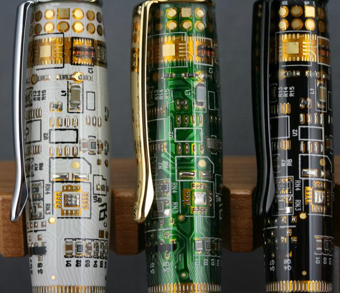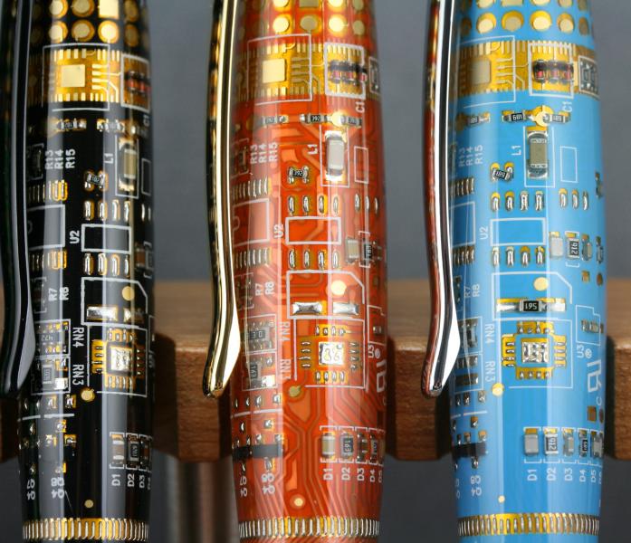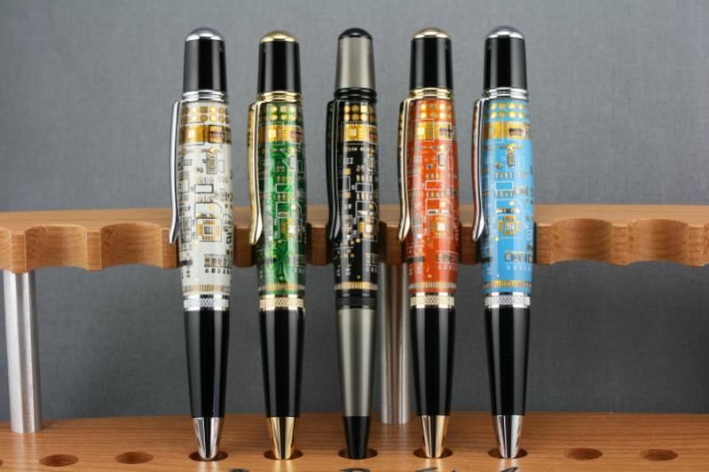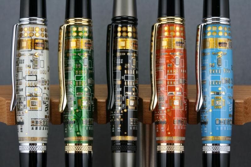 I made a series of circuit board pens today. The black circuit board I turned to a regular Wall Street II and matched with a black brushed satin mechanism.