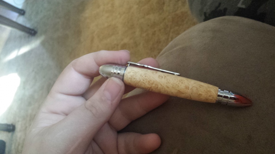 A Animyzo Member Joined Oct 19, 2013 Messages 92 Location Reading, Pennsylvania Jan 1, 2015 #1 I enjoy turning these simple yet awesome pens. This is also my first time turning a burl (stablised box elder) I also made a compson for my buddy in the navy out of blue camo. C&C welcome Attachments 20141230_194649.jpg 161.7 KB · Views: 296 20150101_145652.jpg 120.8 KB · Views: 290 20141230_194706.jpg 127.2 KB · Views: 256