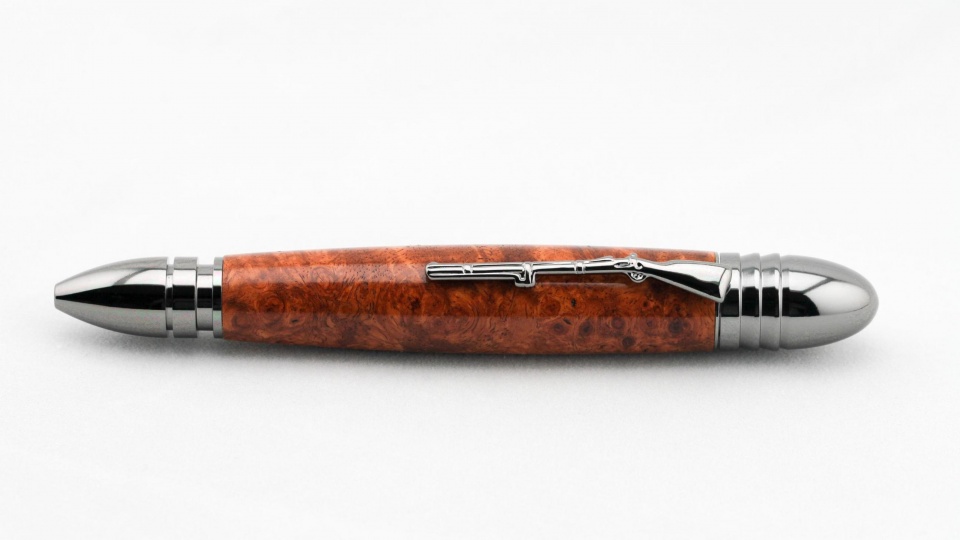 Here is a civil war pen kit I bought from Pen State Industries. The kit is gun metal which is one of my favorites. I purchased really high end Amboyna Burl blanks from EBay. exotichawaiianwoodworks.