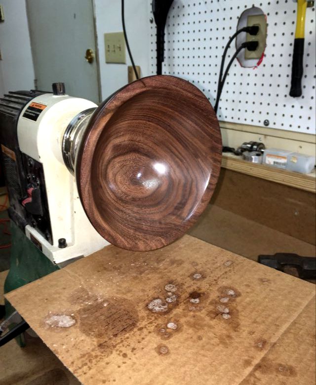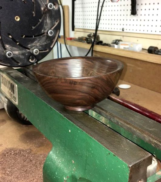 Well, this is the last of the roughed-out walnut bowls. This was odd-shaped because the blank was odd-shaped... I did get what I could out of it. Apparently, when I roughed it out, I went a little crazy with the depth. Thus, the reason for the foot. I'll need to go back to Ohio and get the rest of my walnut that I left when we moved.