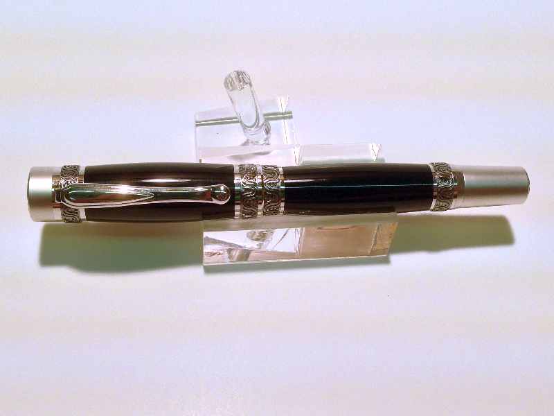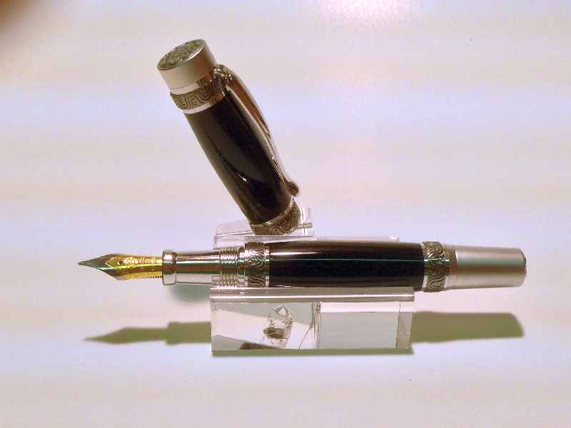 Here is a Lotus Fountain Pen in Rhodium & Black Ti with German black ebonite. This pen turned out much harder to do than I thought it would be.