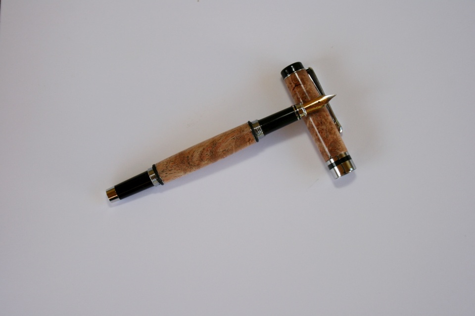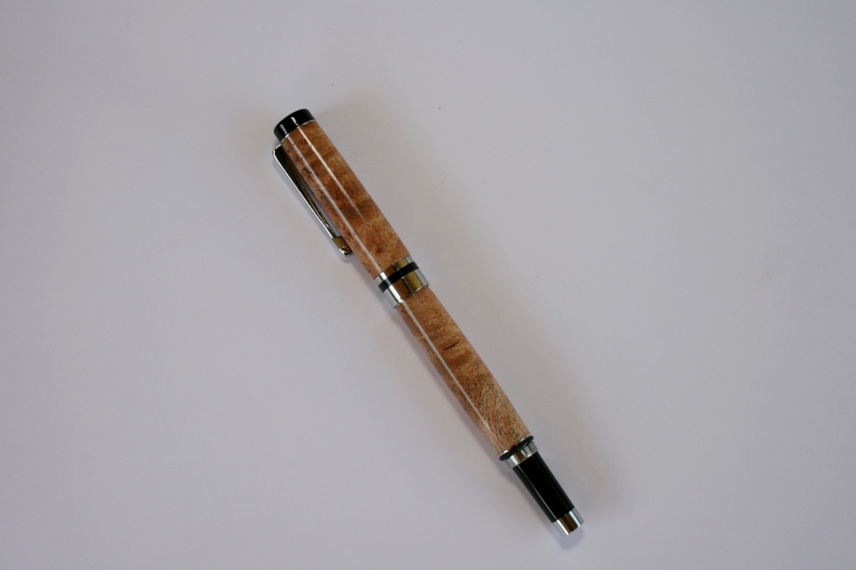 Here is one of the Classic Vintage Fountain Pen's I got for my 1st place kit pen at the MAPG.:biggrin: Smitty donated them, thank Smitty.:wink: The blank is double dyed maple I bought from Jonathon (Brooks803.:wink: These are really nice component pen's, they do require a tenon to be cut in the cap blank but other the that it a easy pen to make. All C & C are welcome.