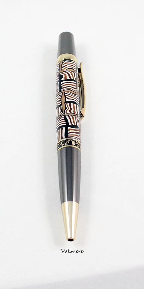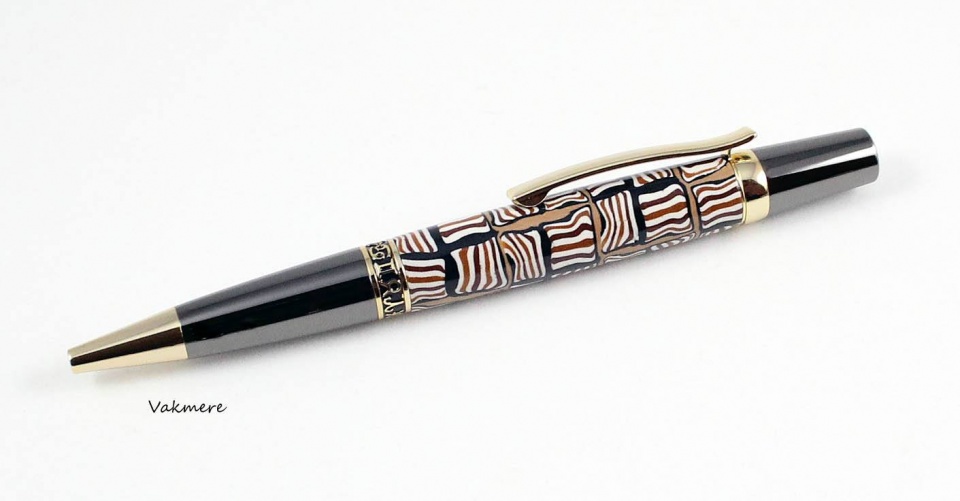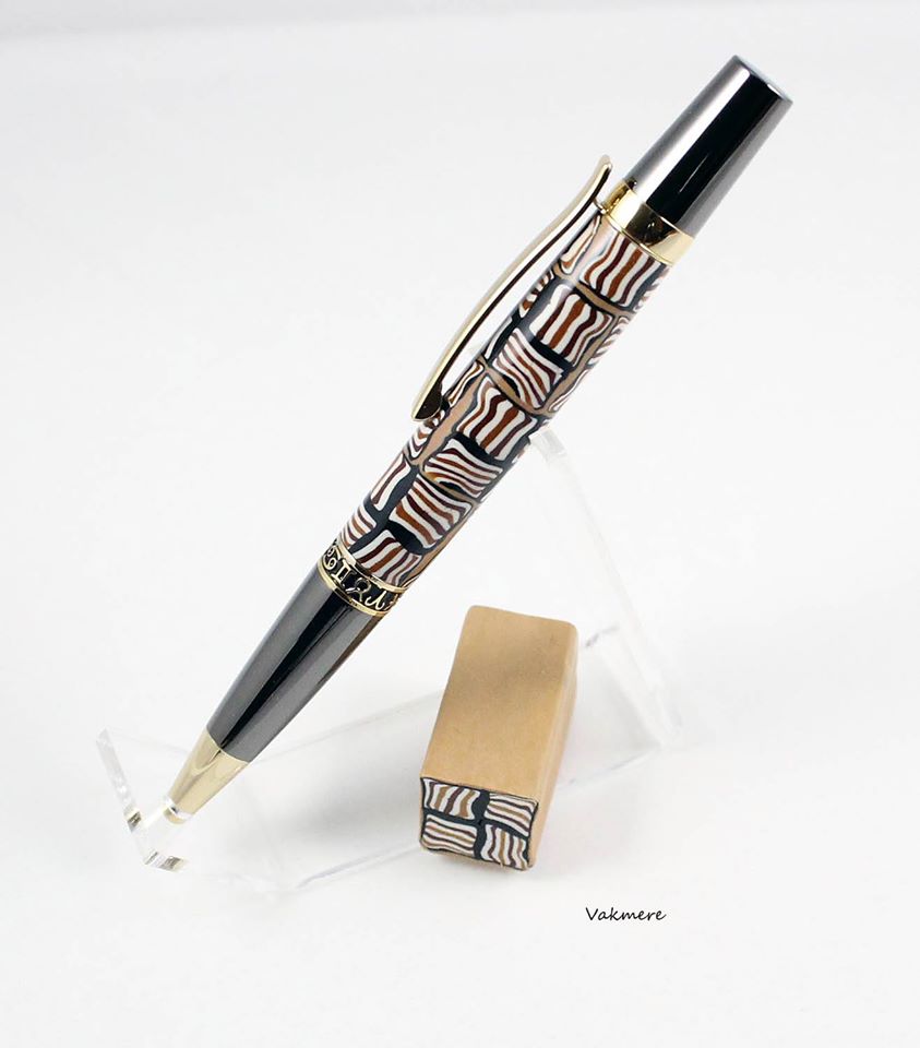 My girl made some clay canes and hands them over to me to do something with. I made like Curley...Nyaaaaa! I had no choice but to use it here. Looks different, sort of like an optical delusion. Beats doing chores. My motto? " I can't do chores if I'm turning pens dear." This was a fun one to do anyway.