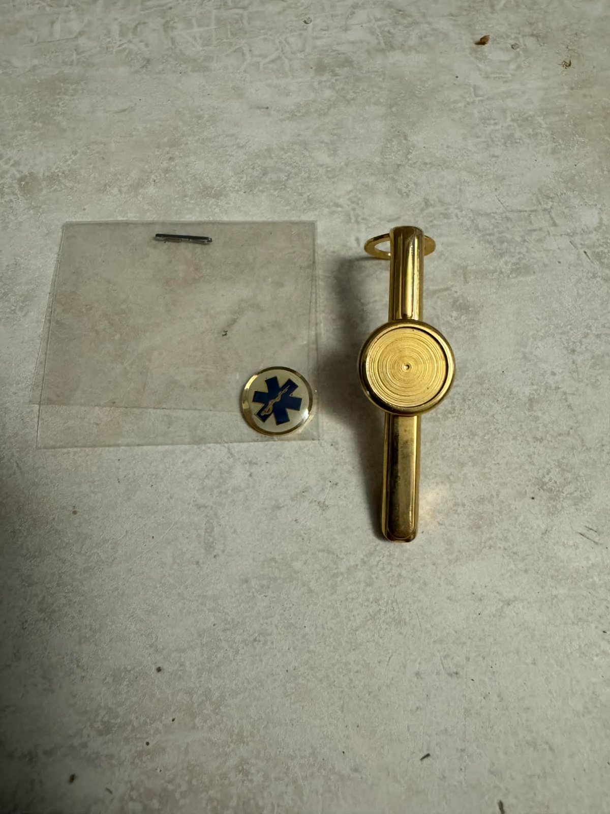 Feeling funky this morning so I gotta be That Guy ... That symbol is the Staff of Aesclepius, Greek god of healing, and is the correct symbol for the medical field. The Caduceus represents to Hermes, the messenger god, and symbolizes commerce, negotiation, and trickery ...Can't help with the question but the medallion is the caduceus, the symbol of the medical field.