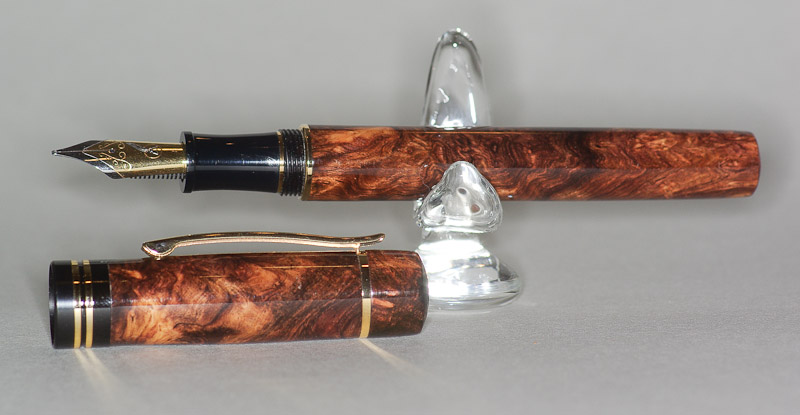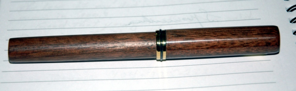 Not "kitless", but modified to be a closed-end pen - both barrel and cap. I used the center section and the nib from a Jr Gents II fountain pen, and some straight grained walnut from my scrap bin. The walnut has been following me around for about 40 years.