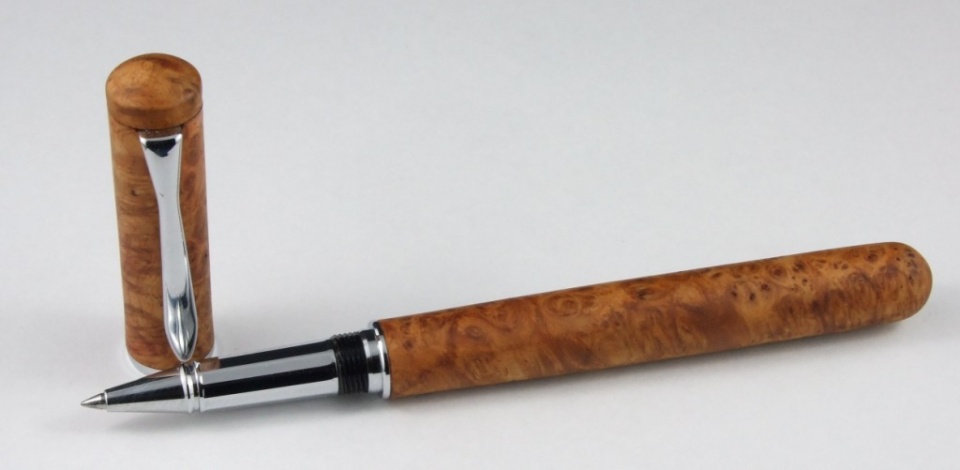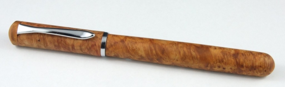 Clsed end Sedona in Chrome and clad in Rosewood burr, with a matt finish and hidden clip. Again not perfect in the proportions - too long in the body. Also I reduced the metal showing at the cap base as I thought it looked better with less metal showing but forgot it reduces the total cap length correspondingly !