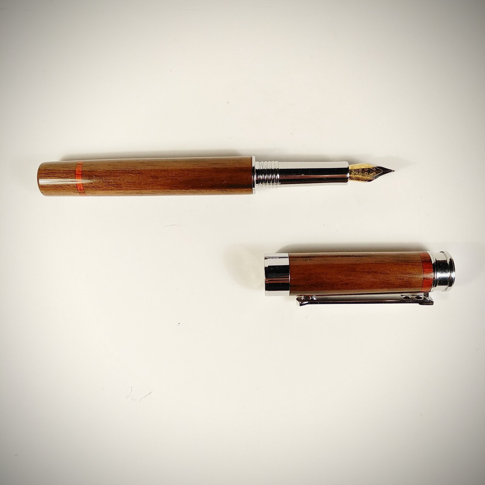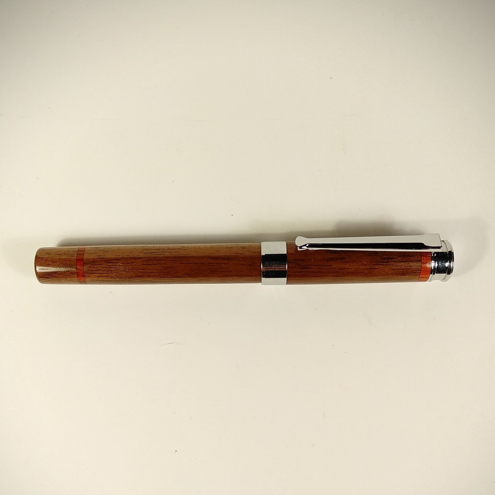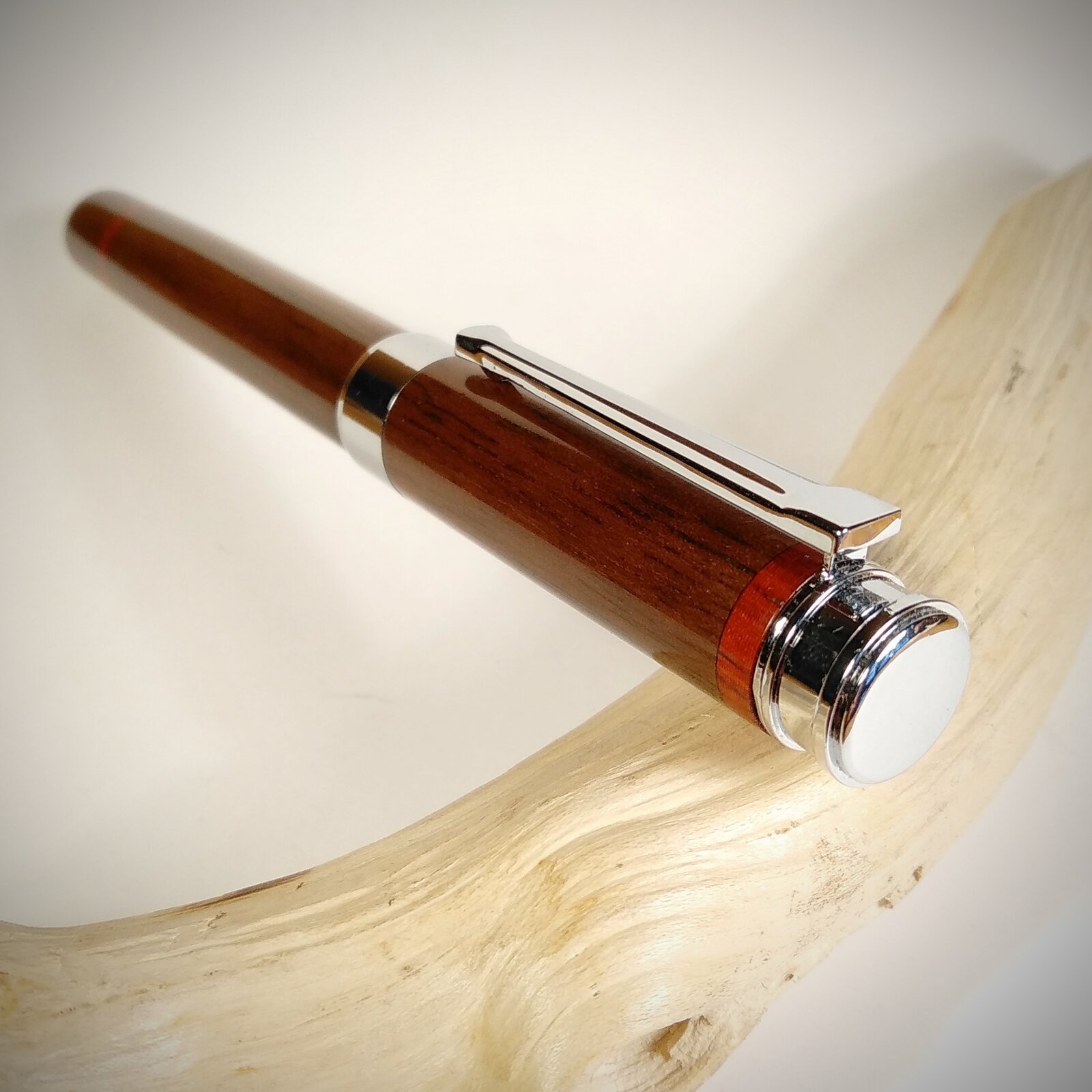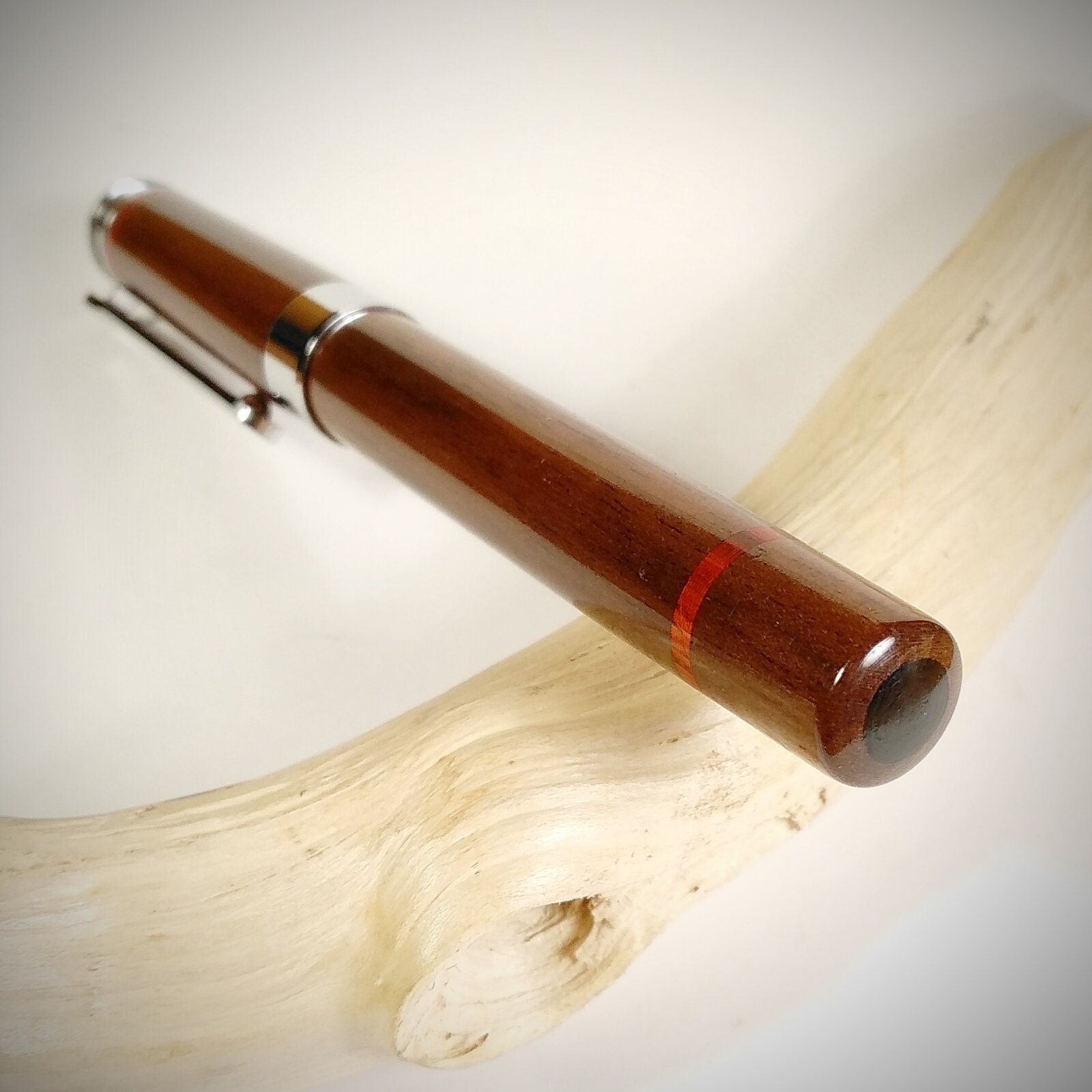 This is a first attempt for me to create a 'custom' roller (but can be converted to fountain pen) with double closed end. Clipless and non postable. Zebrano, padauk and ebony wood. 153mm long, 37g of weight in roller configuration.
