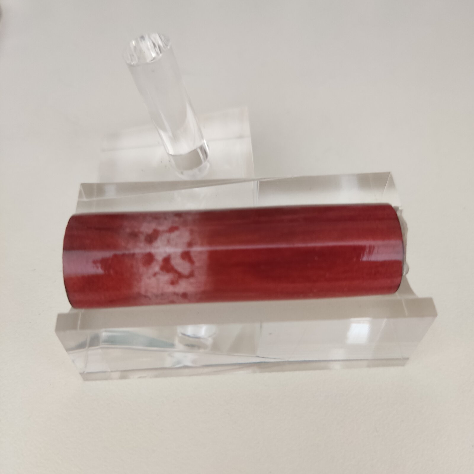 After I applied several coats of CA finish (and before final sanding and polishing), I noticed cloudy spots on one of my Redheart barrels (the second came out good).