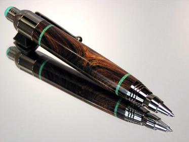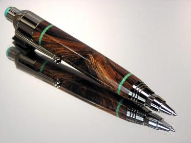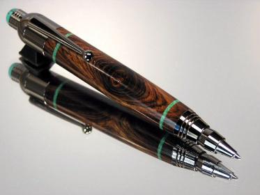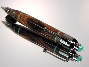 Here's a Cocobolo Black Titanium Artist's Sketch Pen/ Pencil with Crushed Turquoise Stone Inlaid Bands & 6mm Cab Finial, I just finished! Let me know what you think! Thanx RR Neely!