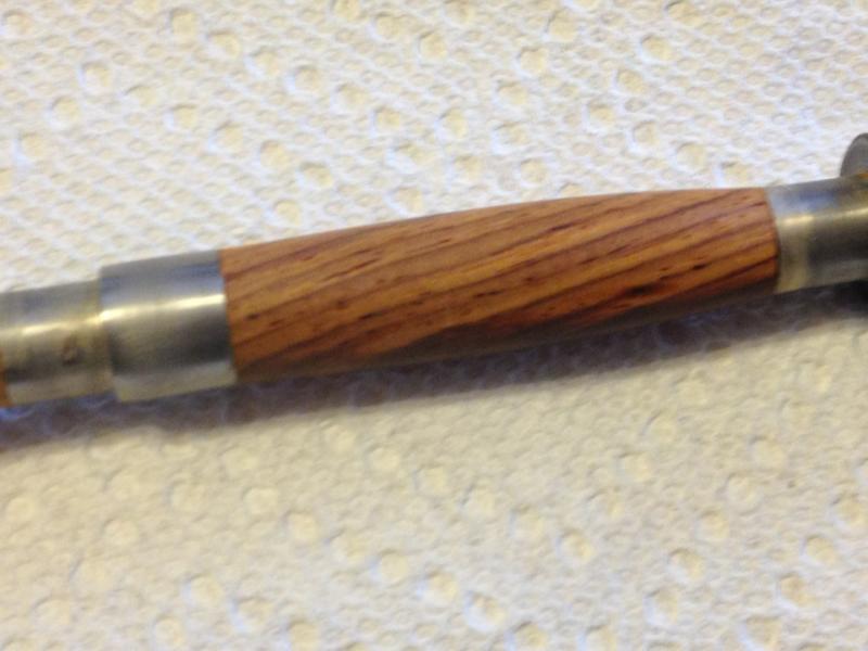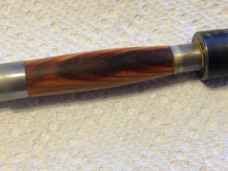 I purchased a 10 pack of cocobolo from PSI, all of the blanks have a dark exterior as if something was applied to them that has soaked into the wood. The centers of the blanks are much lighter in color. One of the blanks didn't drill straight so one side of the pen has a dark streak down the side where the drill went too close to the "stained" wood. Is this something natural in cocobolo? Or has something been added to the blank to darken the exterior?