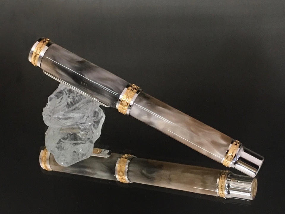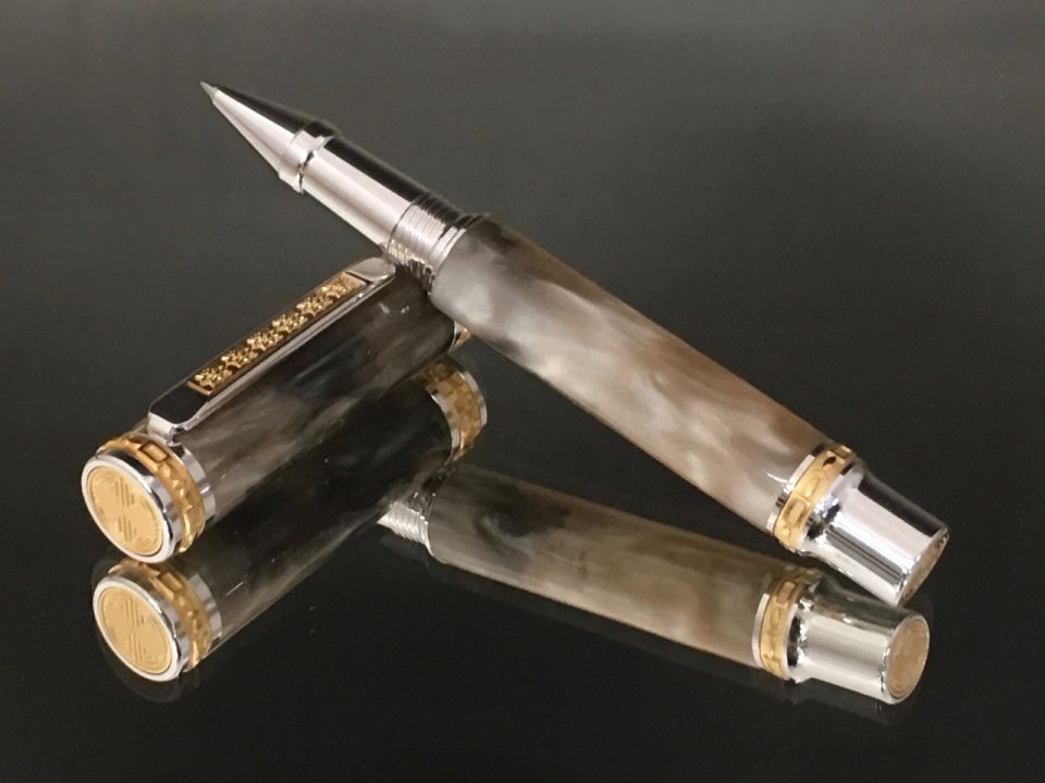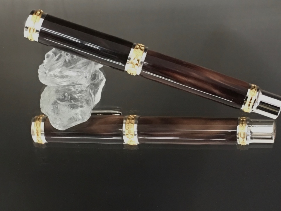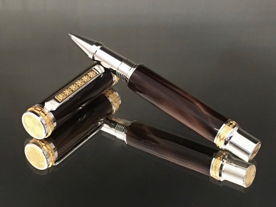 Just finished two more Emperors for a show in 2 weeks. These are lucite blanks in espresso and caramel swirl. I painted the tubes black (I may try a lighter color to see how that comes out) and mated them with the Emperor in gold.