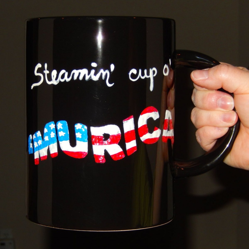 My son's "favorite" saying is "A Big Steamin' Cup o' 'Murica" so we thought we would make that come to life for him. It will hold about 1/2 a pot of coffee in a single go!