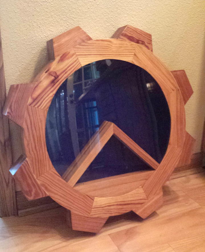 Just completed this cog shadowbox for my son. It's for a Coast Guard Chief that is retiring in a few months. It's approximately 28" outside diameter, 3" deep, made from antique pine.