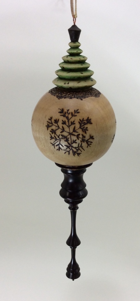 Here is an ornament I turned last year. It is curly maple and ebony.