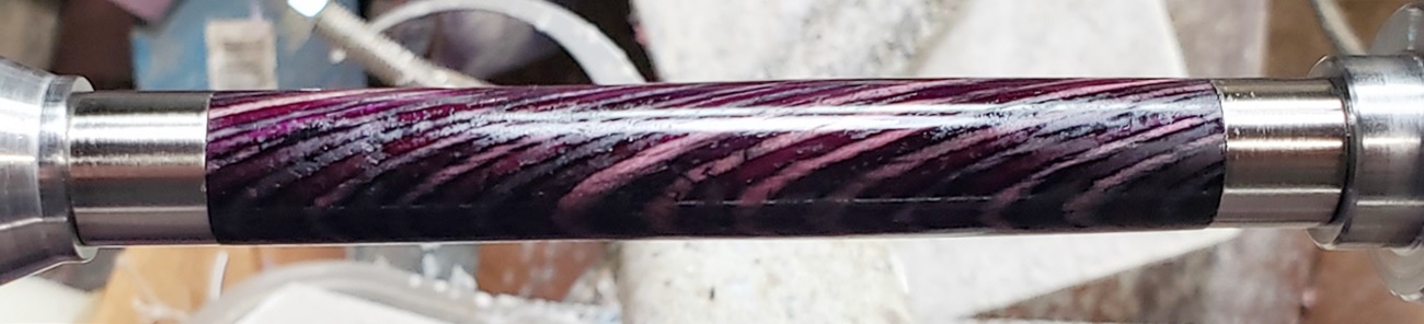 This is a Color Grain blank from PSI, called Tahoe Purple. The finish is Pens Plus. When I put the finish on it, it darkened considerably, almost too much. What causes that? Do I finally need to learn the CA finish? The dark blank is really unattractive to me. The first photo is after final sanding.