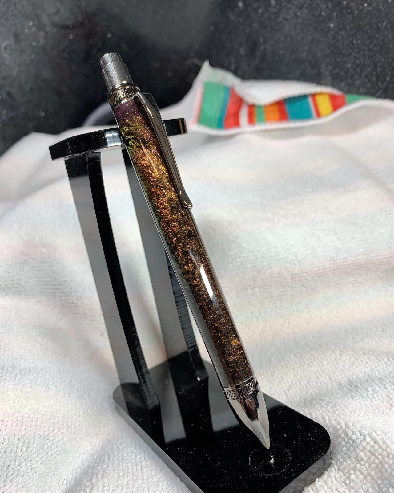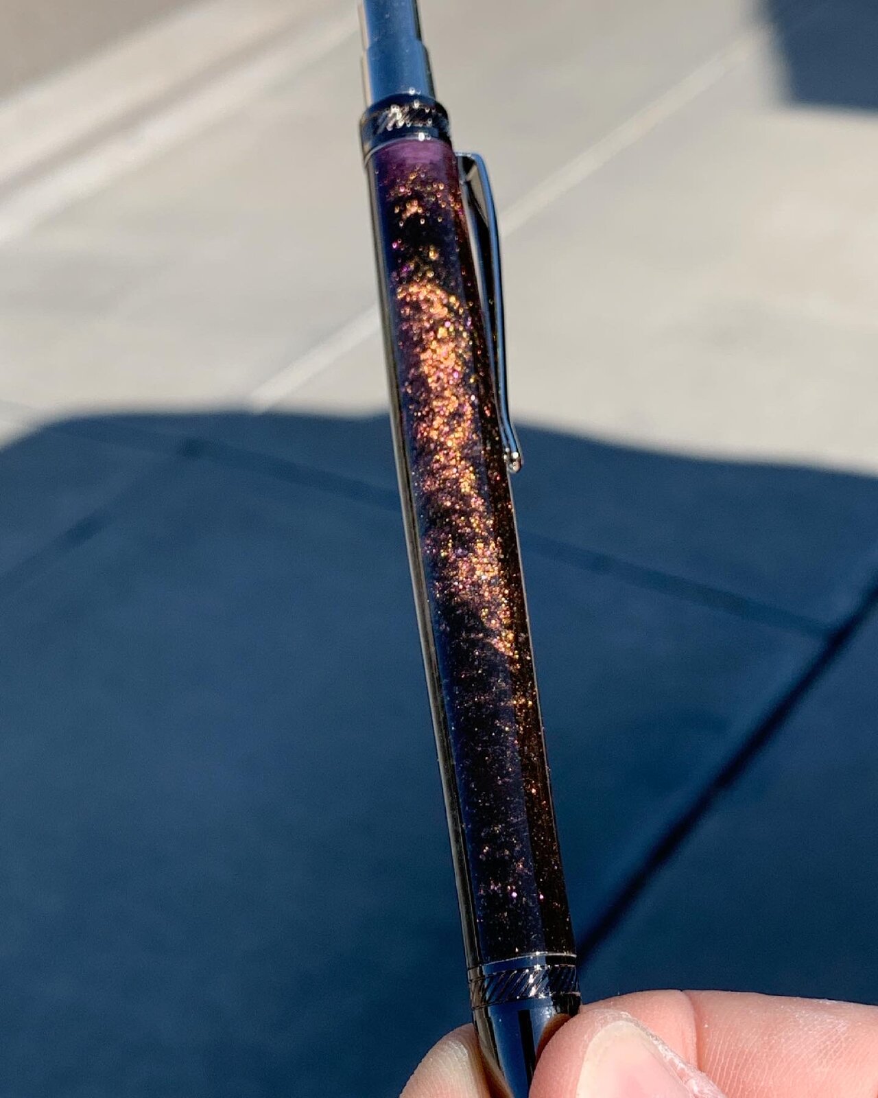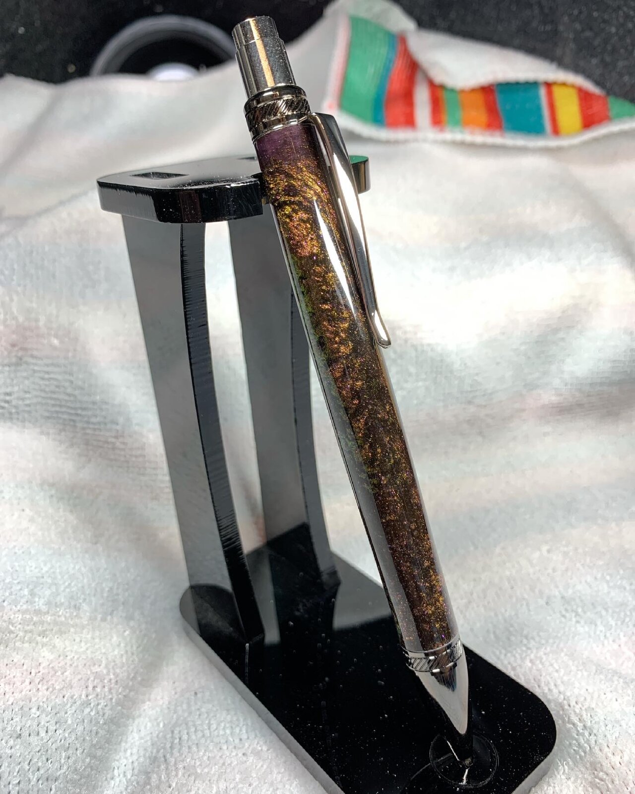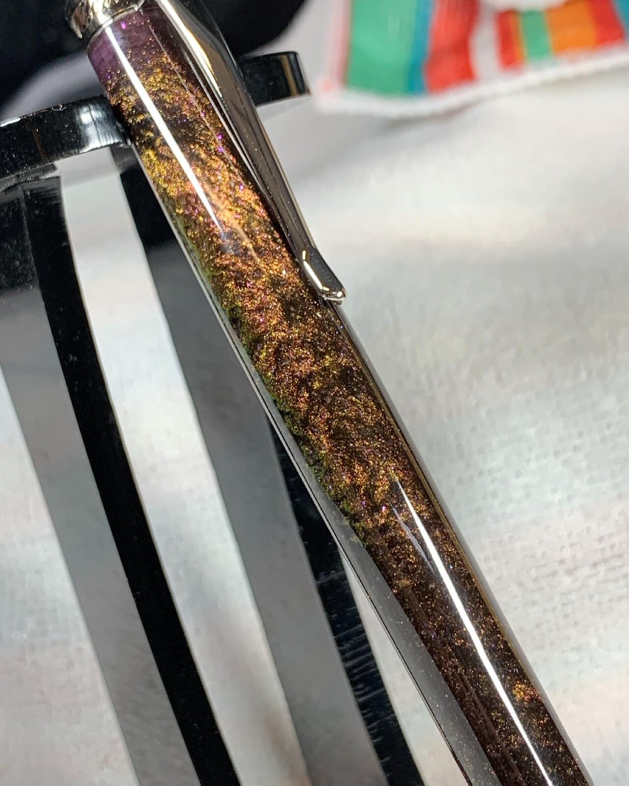 Color shift is in the mica powder I used making the blank. The pigment changes several colors depending on how the light hits it.