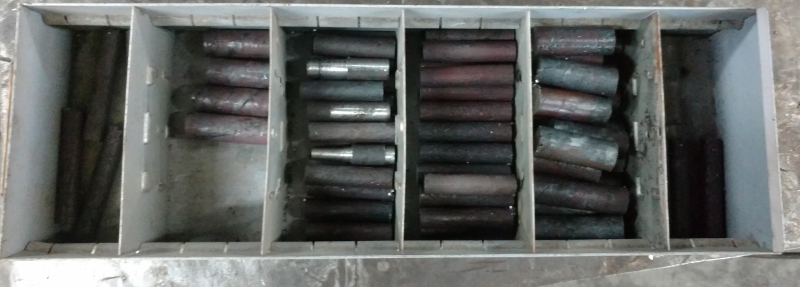 Hi all, I know its been a while but my 13" lathe is still down with a shattered thrust bearing and 0.030" wear on the journal. So i'm using a friends heavy 10" south bend to turn the blanks. However I still made my largest Damascus billet yet (a 40 layer, 15 lb hunk of steel) It measured 6"x1.5"x4". I forged it out to 0.750" dia. rods 24" long and made 3 of them. that equals 6' of pen blanks, and I had 4' of 9/16" left over from my last billet. so some may see just cut steel in the 2nd pic...I see 2) broadwel scepter fountain pens, 4 bolt action tec pens, 4 buffalo pencils, 8 breast cancer twist pens, 11 trim line pens, 8 slim line pens, and 1 led flash light. more up dates coming soon.