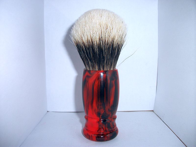 Orange and black mix polyester resin fitted with 26mm 2-band badger.