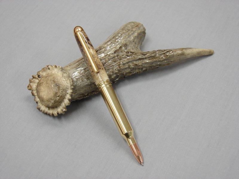 A customer had me make this desk set for a friend as a surprise gift. His friend shoots a Remington 7mm Magnum so he had his friends wife sneak a spent cartridge along with a bullet which the customer sent me.