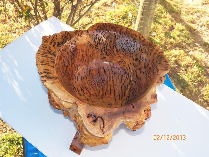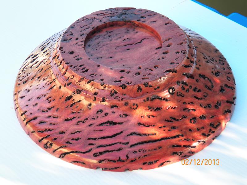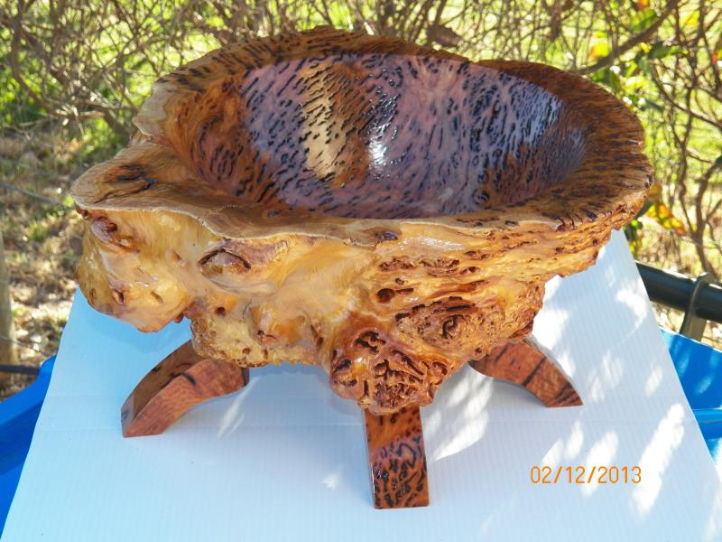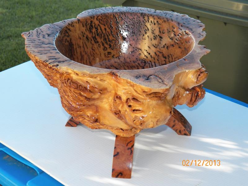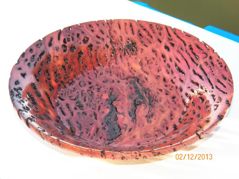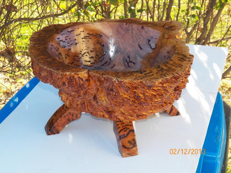 he wanted it done as a fruit bowl and be done first, as it was going to be a Christmas present for his wife, the other 2, one a Salmon Gum burl (bowl blanks shape)