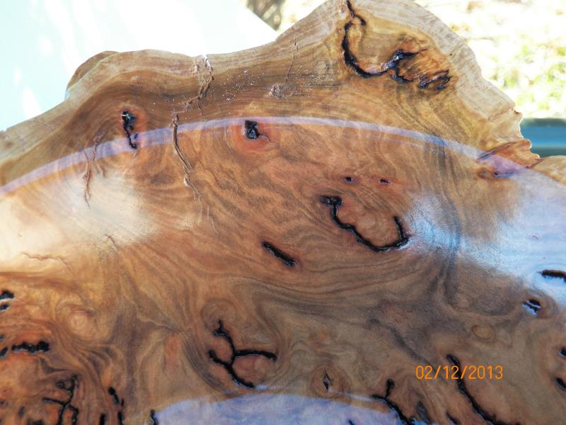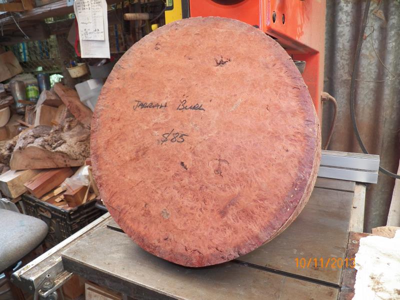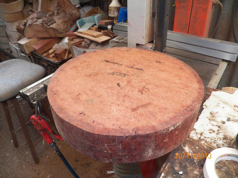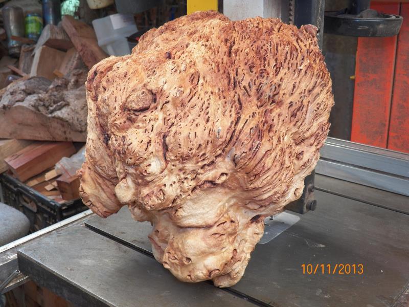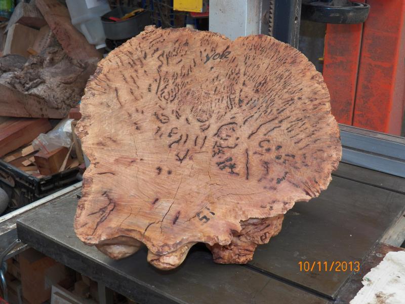 The 2 burls in a normal bowl blank shape, would be some sort of platters while the third burl, he only mentioned to me that, he wanted as much natural outer skin/surface as possible and that, he though that he would put 3 legs into it to stand it up.