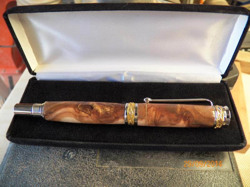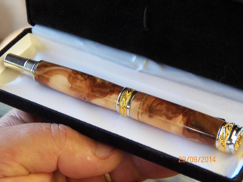 She has many pens made by me so, I knew that, she liked it but, she was not short of pens nor I had a decent kit for it so, I said to her that I would put it a side for one day. Interestingly, this sample has stood hanging by a nail, together with another 50 or so samples all nailed to one of the workshop roof wood beams, that is of easy breach.