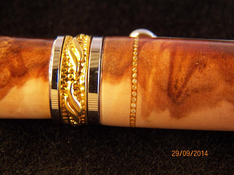 I finished the pen yesterday, and while not perfect, I accepted what the wood had to give me, good or bad, I only decided to add a small/narrow ring on the top barrel with some very tiny round imitation golden balls, not because it was absolutely necessary but because, I wanted to add something else to it.