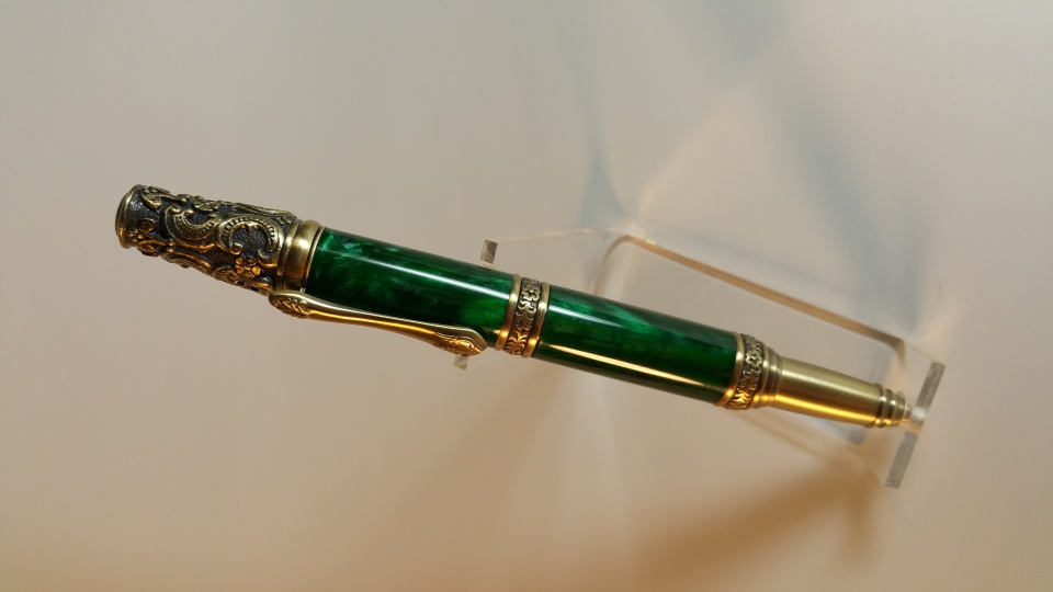 That's a beautiful pen. Is it one of your own castings? I just ordered some cigar pens to try and then I saw a beautiful filigree pen I want to try but did not order that as we are going camping at the end of the month and I need to get a fishing license. Sis wants to fish also so we will need to fish some fresh water but it has been so hot over here that our rivers are low. Hopefully we'll find a nice lake some where. I won't be casting until I find that leak in my pressure pot. Too hot to even mess with it now... Great job on the pen. I like it.. Fay