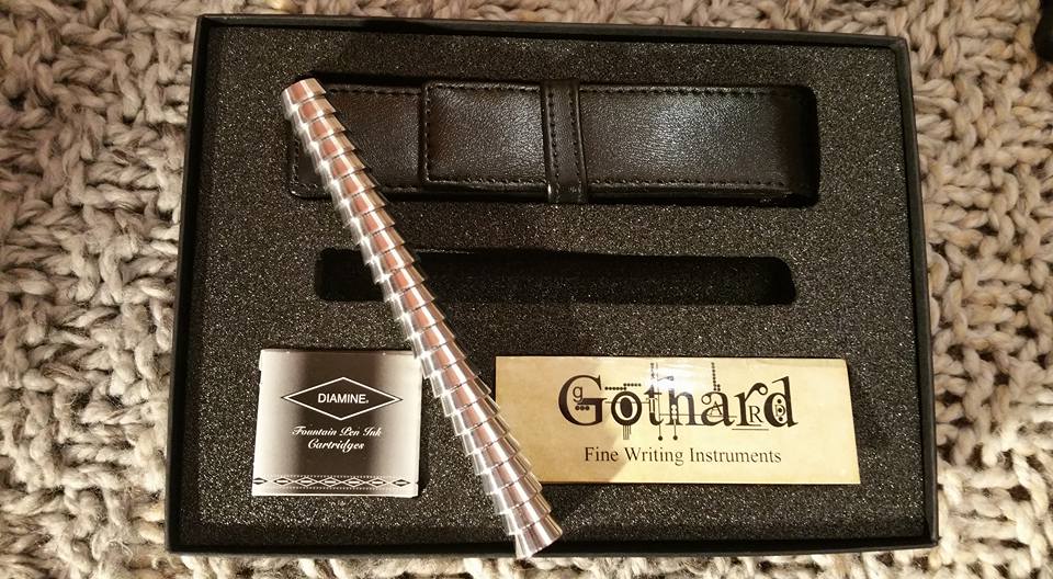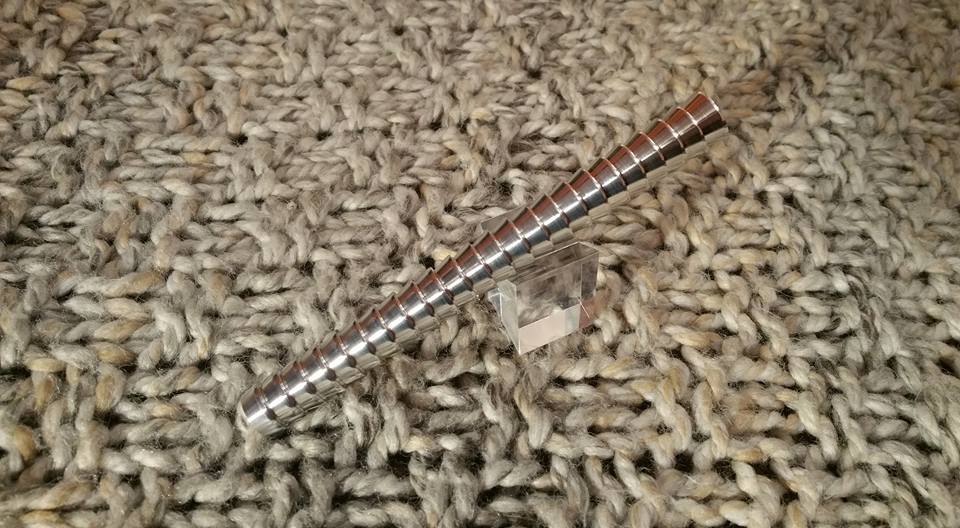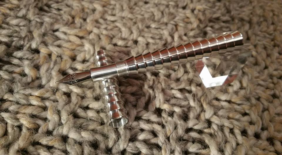 Todays handmade fine writing instrument. a conical design crafted from aluminium. lots of sanding was required to ensure there were no rough edges, without going to the point of rounding off the edges to keep it's sharp appearance. feels lovely in the hand, and topped off with a JoWo nib.